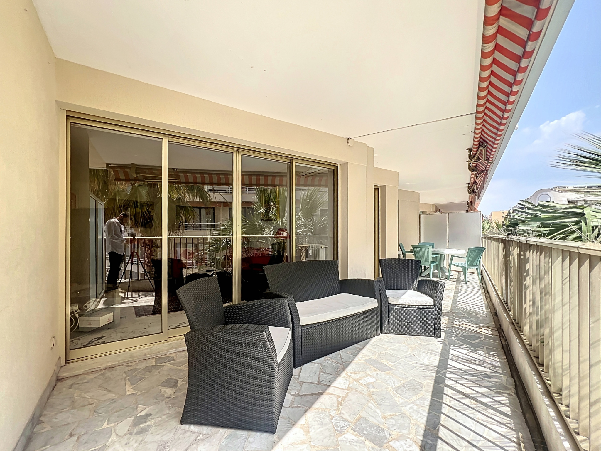 Situé au 2? étage d’une résidence sécurisée avec piscine et gardien, cet appartement traversant offre une vue imprenable sur les îles de Lérins.
