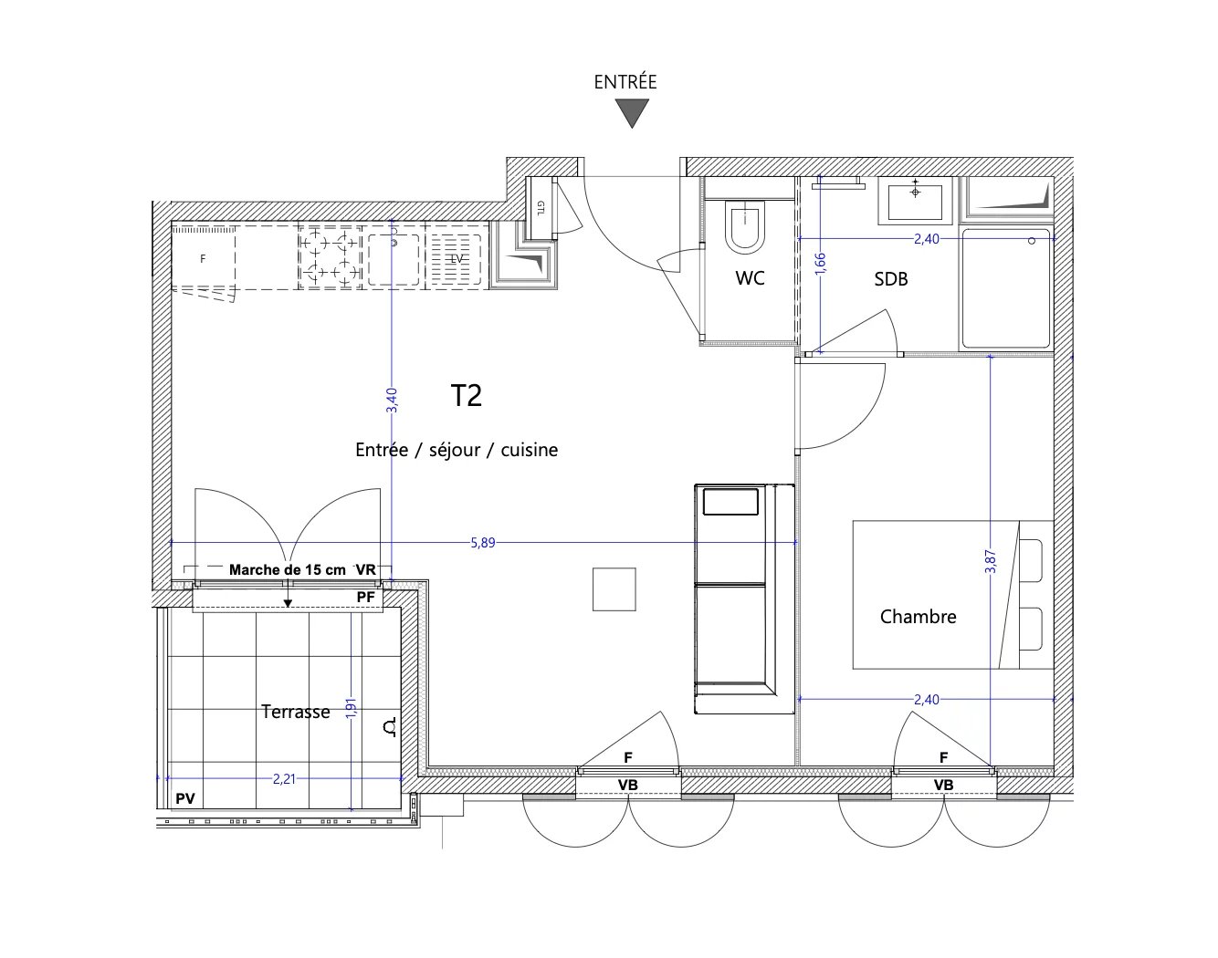 Ce 2 pièces de 40 m², parfaitement agencé, comprend :