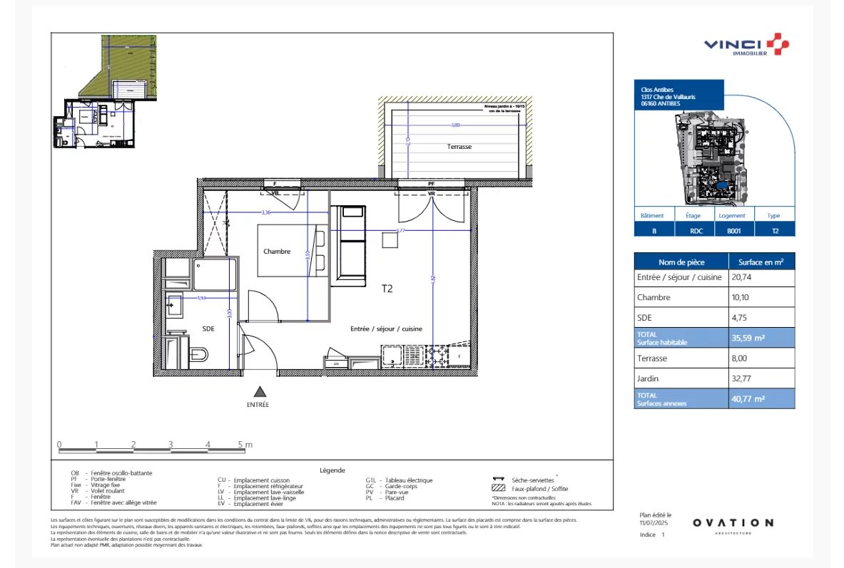 Antibes – Mont Saint Jean - Grand 2 pièces traversant de 53 m² avec 17 m² de terrasses.