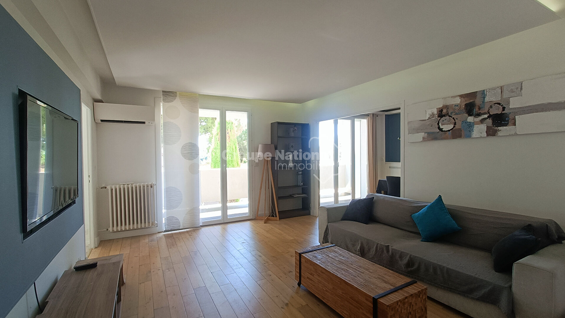 Quartier Pont du Lys réputé pour sa plage, ses commerces, restaurants, animations et néamoins en retrait de l'agitation, ce T3 traversant de 72 m², est prolongé par deux te...