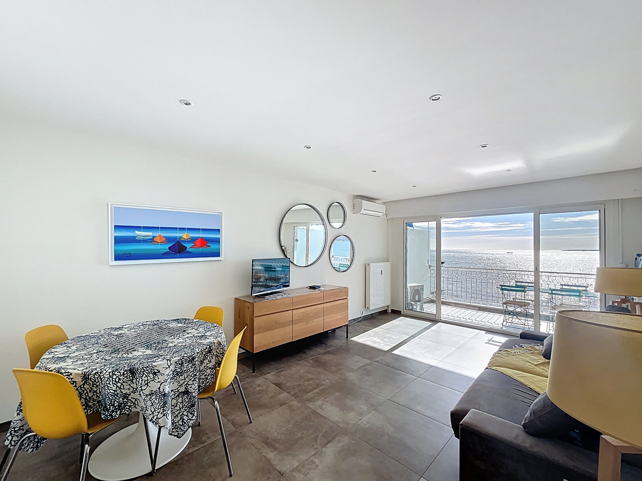 L'agence Planet Immobilier a le plaisir de vous proposer ce superbe studio de 35 m2 entièrement rénové. Situé en étage élevé et offrant une vue mer panoramique exceptionnelle, du Cap d'Antibes aux Iles de Lérins jusqu'au massif de l'Estérel...