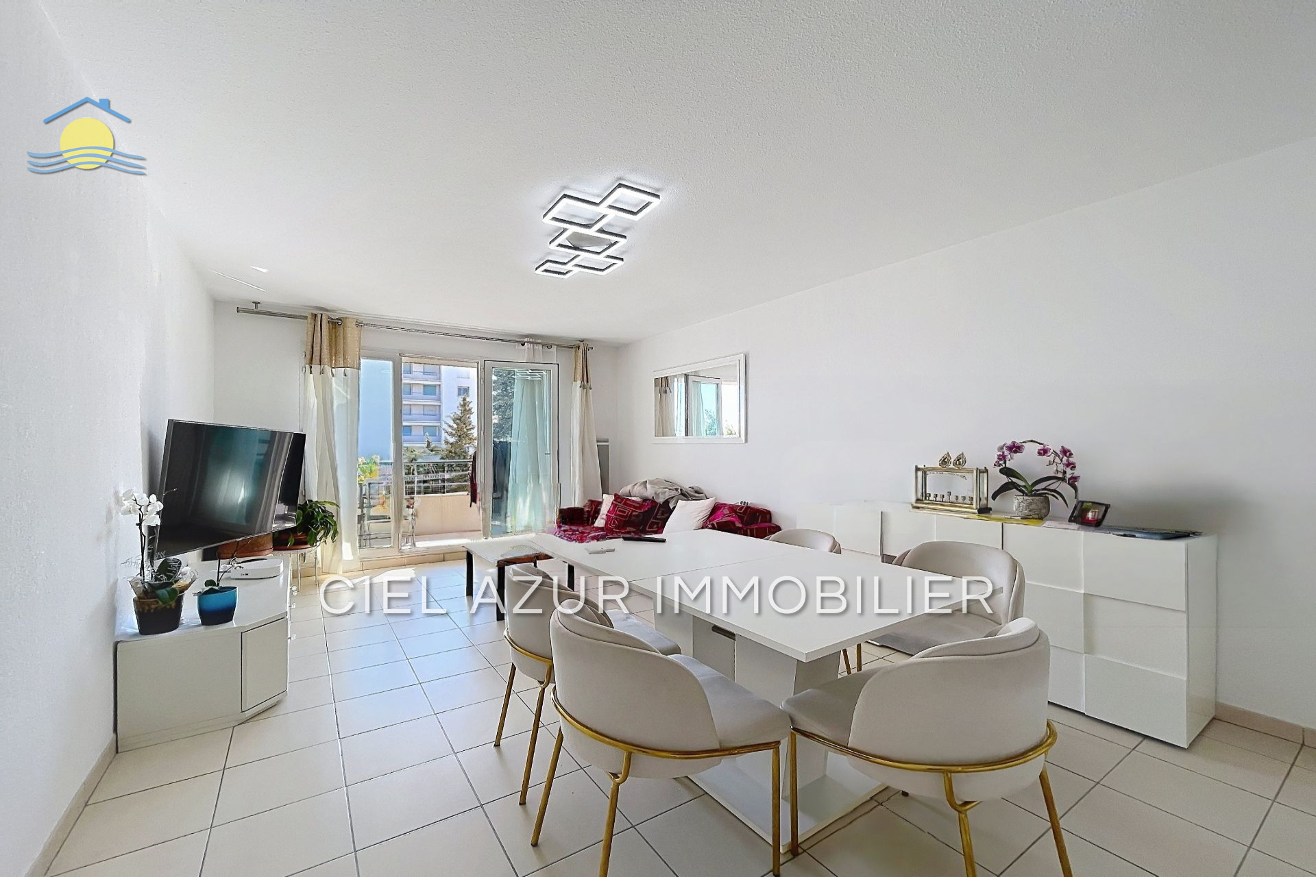 PROCHE CENTRE Dans une résidence gardée dotée d'une piscine d'un tennis et d'un terrain de boules, magnifique 3 pièces d'angle un hall, un séjour donnant sur une belle terrasse aménagée, une cuisine américaine équipée donnant sur une terras...