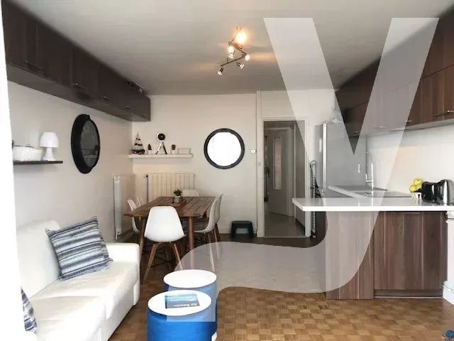 Van Poulle Immobilier vous propose: Dans une copropriété entourée de verdure et au calme, à deux pas de toutes les commodités (gares, plage et commerces), decouvrez ce grand T2 de plus de 49m2 habitable. Situé au 5ème étage avec ascenseur, il offre une vue dég...