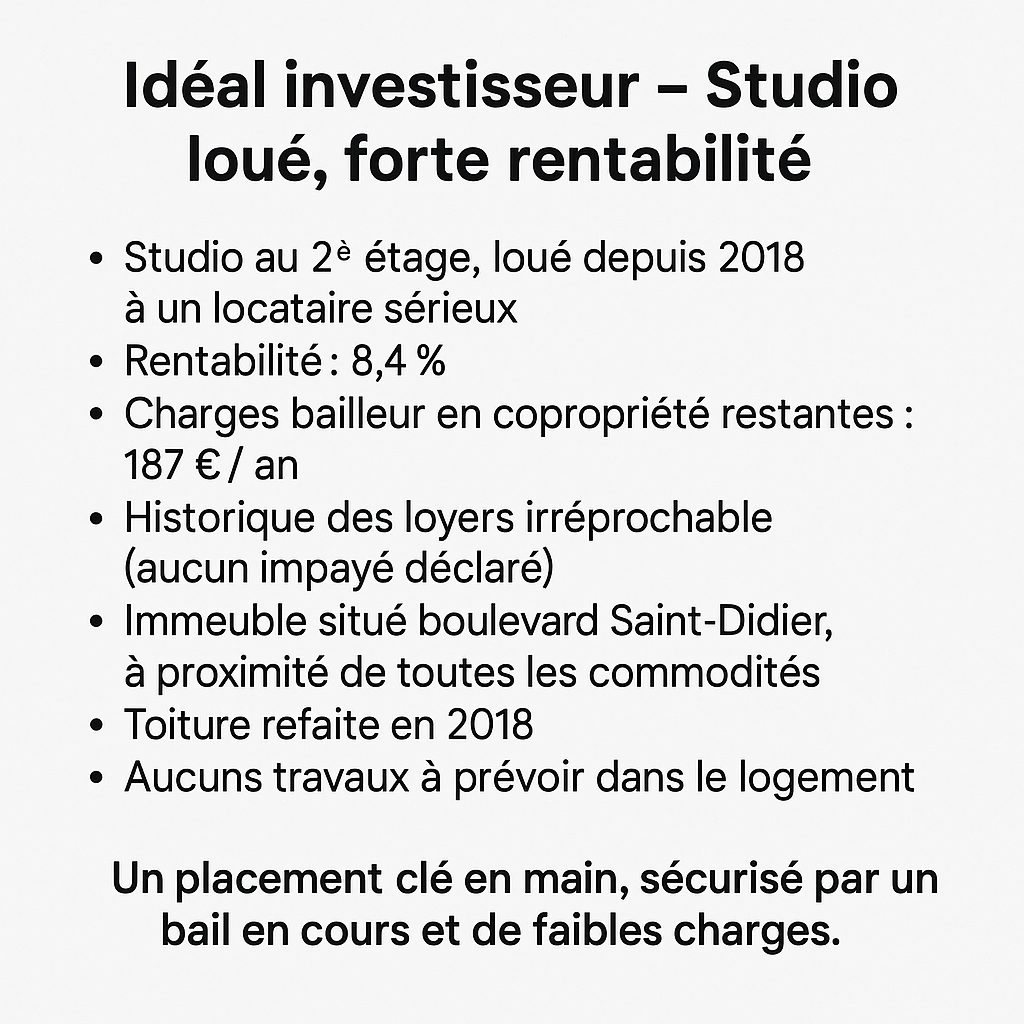 Studio au 2? étage, loué depuis 2018 à un locataire sérieux.