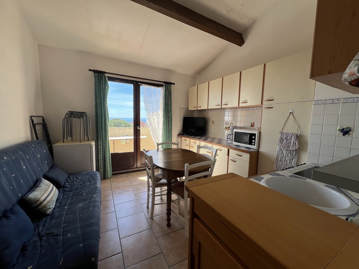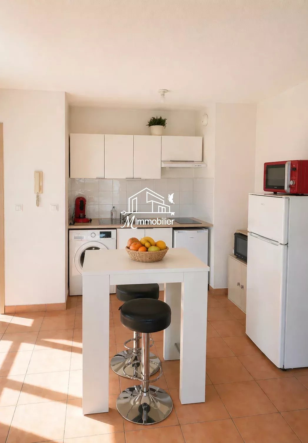 Dans une résidence située à 5 mn à pieds de la plage et du marché, appartement T2 Mezzanine composé d'un séjour avec coin cuisine équipé, une chambre, salle d'eau avec douche et wc et une mezzanine (hors carrez) en partie meublé