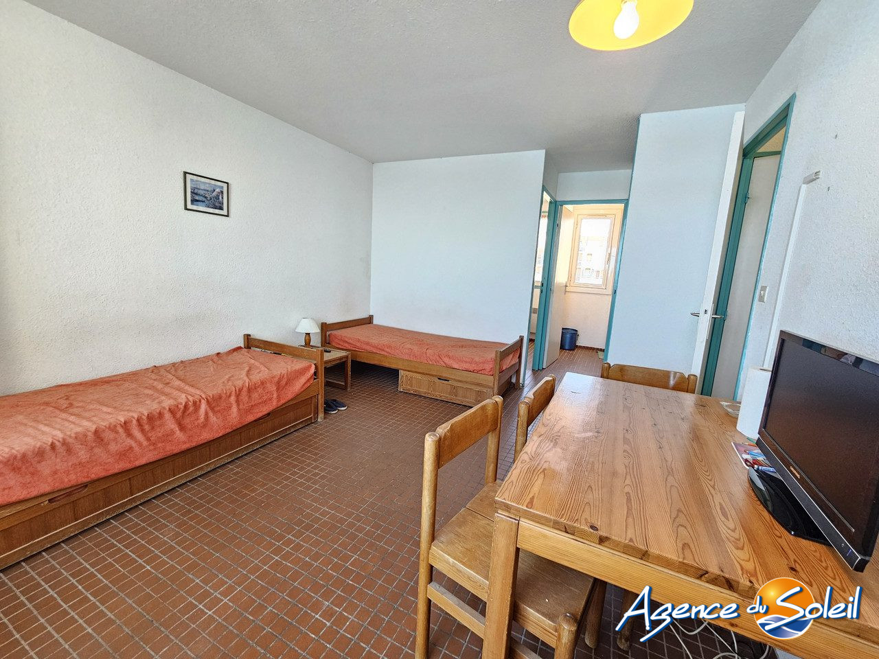 Fütterer Property vous présente à Gruissan - Les Ayguades : Appartement 2 pièces + loggia, traversant de 22,80 m² habitables, situé en rez-de-chaussée et bénéficiant d'une grande terrasse exposée Est avec un accès direct à la lagune.