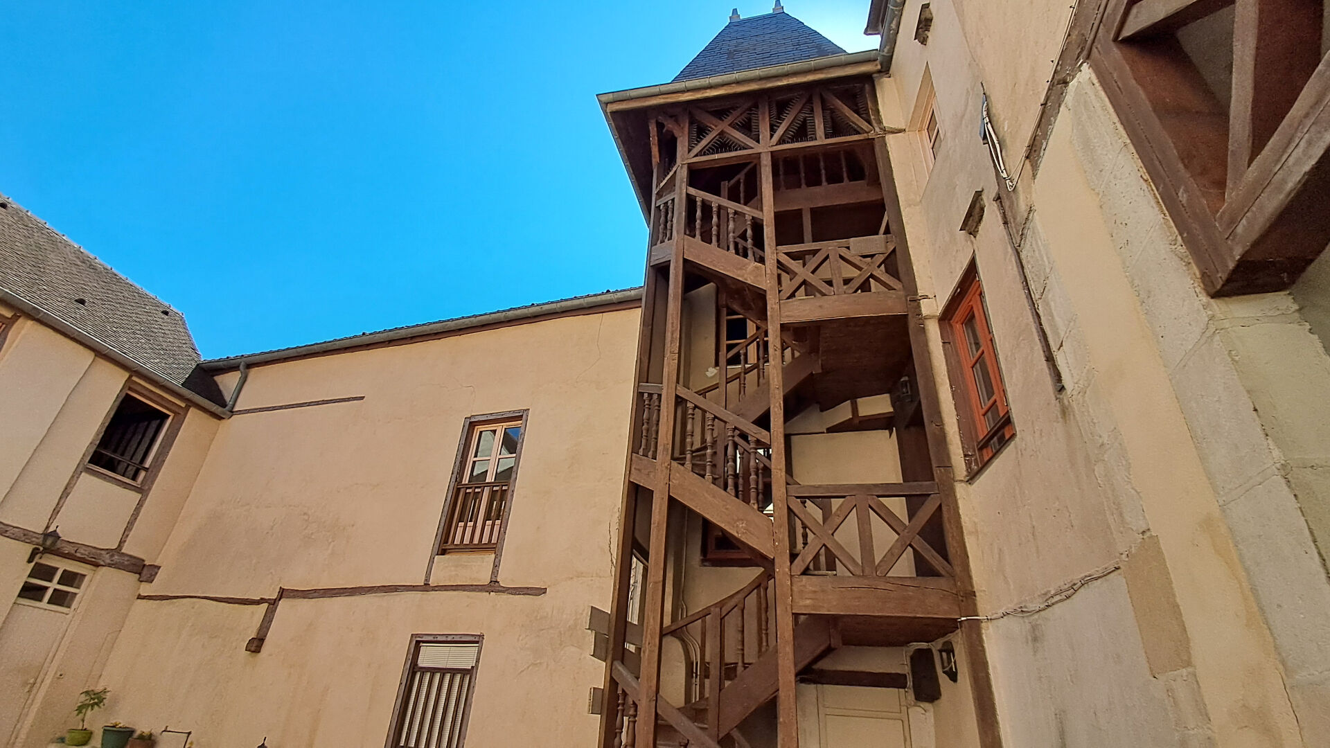 Colombages, cave et stationnement privatif sur une cour intérieure.