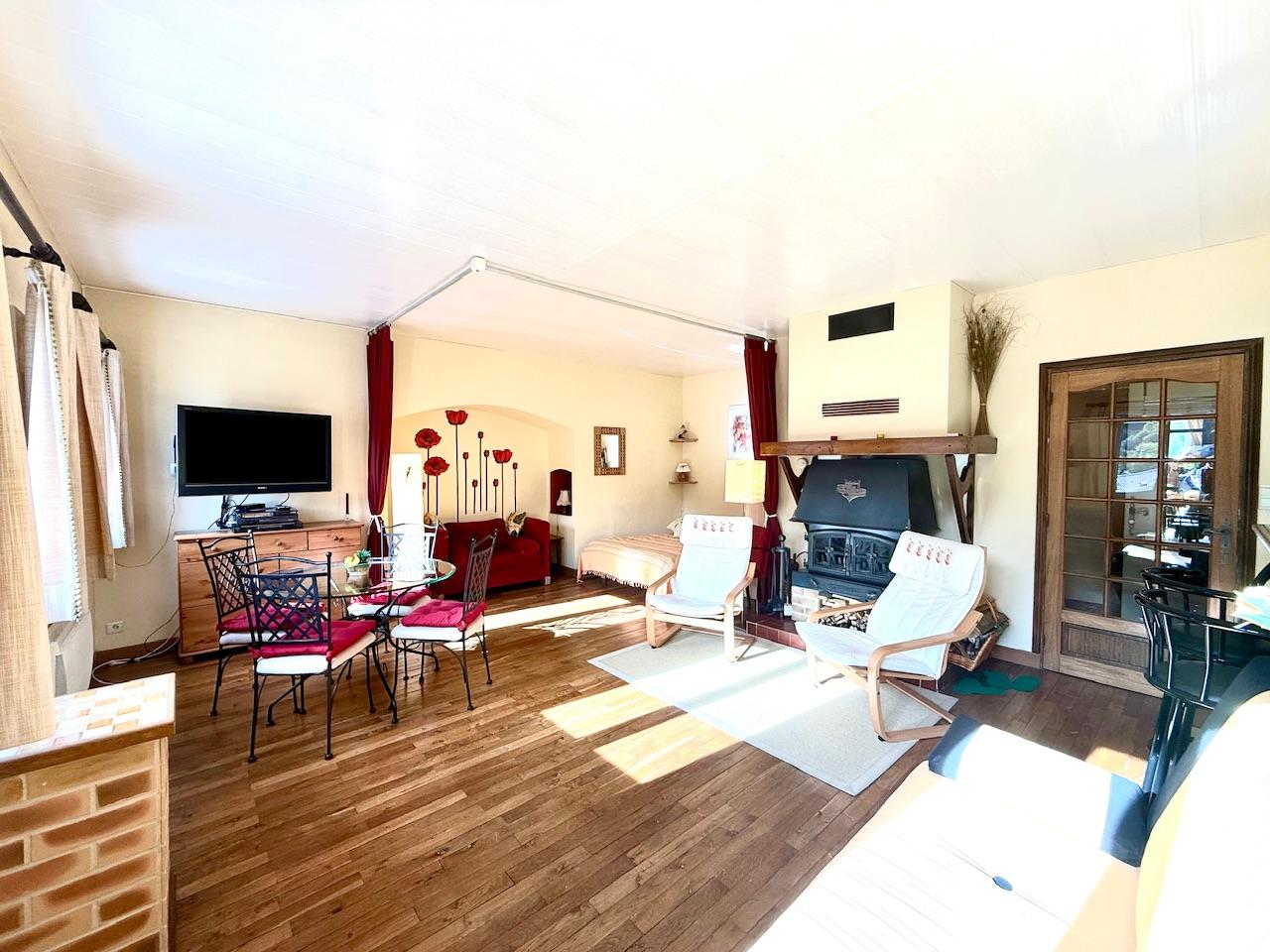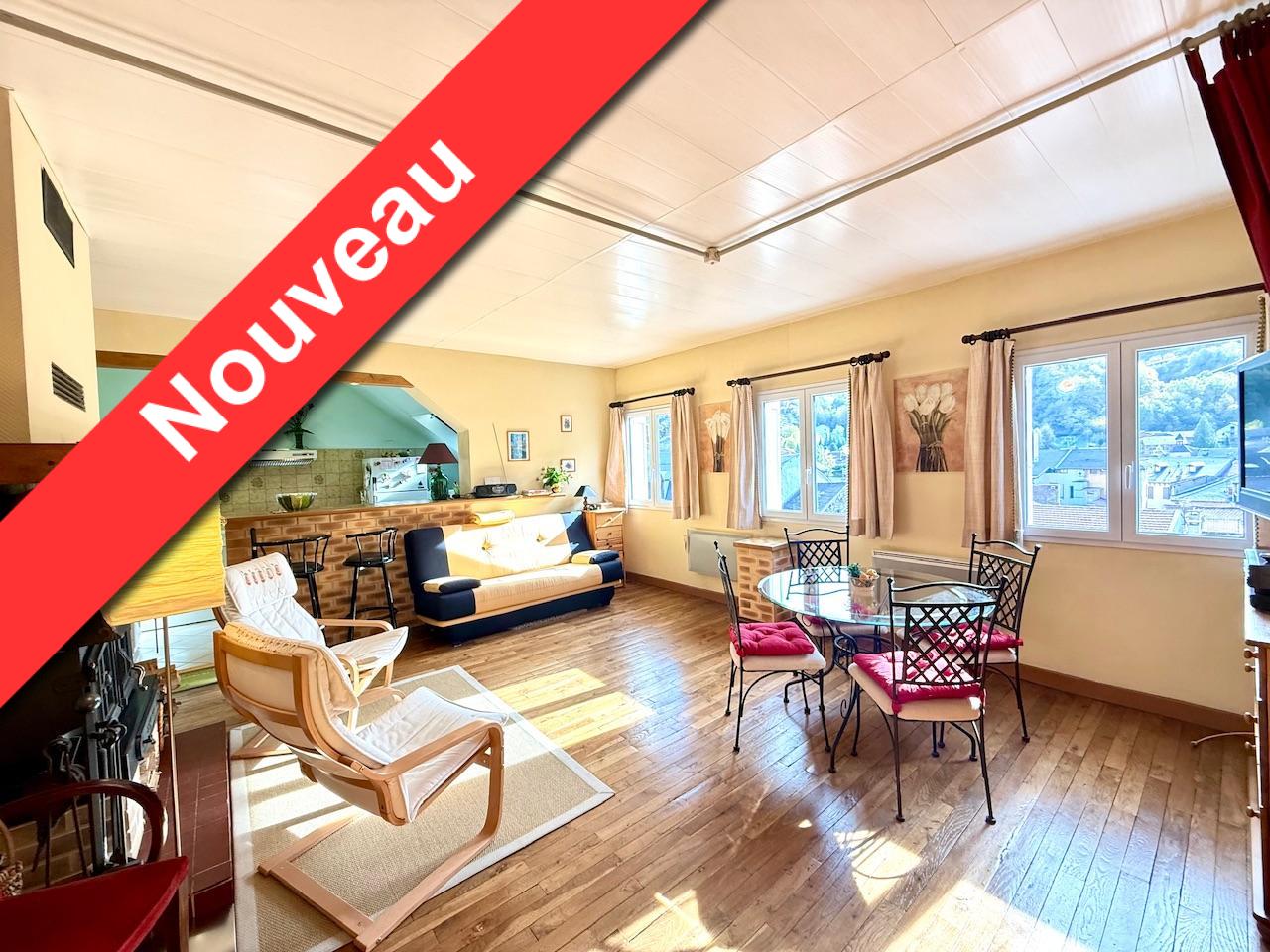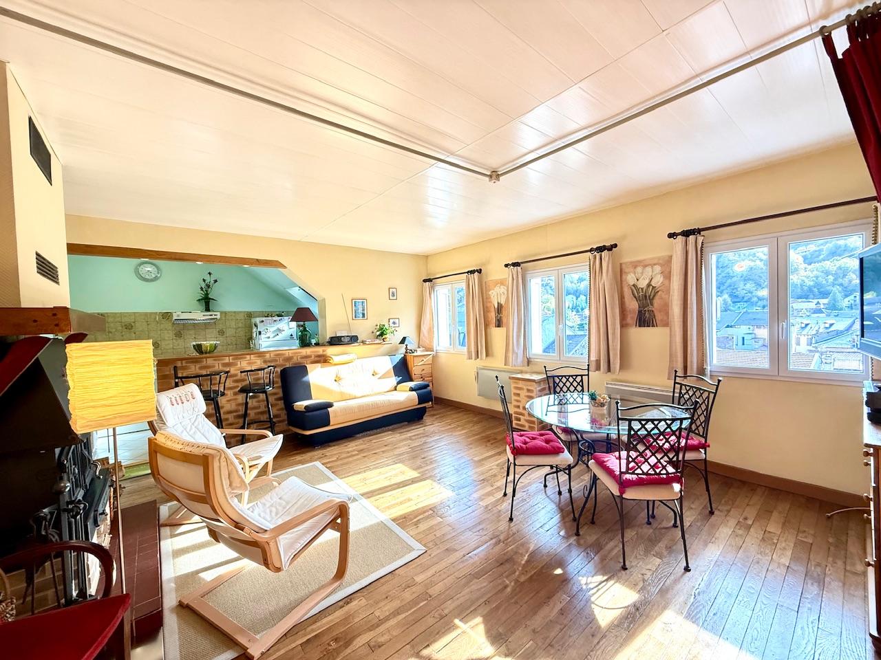 AX-LES-THERMES, Appartement Studio de 50 m² - 46 m² Carrez, en plein centre-ville dans une copropriété de 45 lots comprenant entrée, grand séjour avec poêle à bois + coin nuit, cuisine ouverte, cellier et salle de bains-wc. Appartement très lumineux, avec géné...
