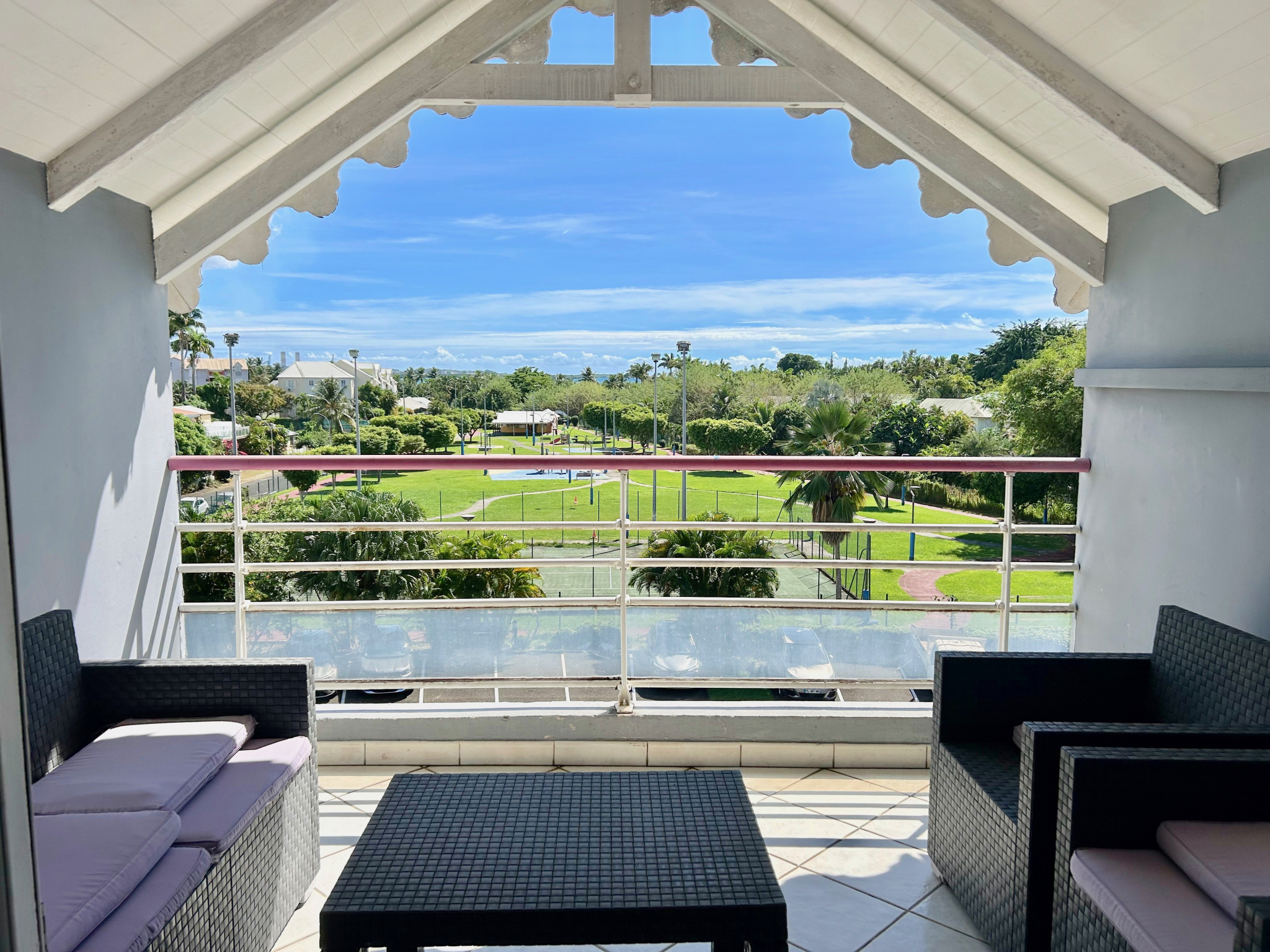 Situé au 3ème et dernier étage d'une résidence sécurisée de Baie-Mahault, ce bel appartement traversant de 71m2 dispose d'une belle vue mer et montagne.