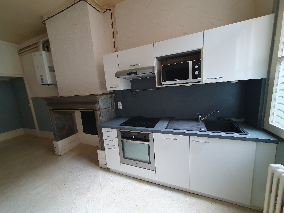 Haut de Battant - Bel appartement T3 de 70 m² au 1er étage, traversant entre deux cours - se compose d'une entrée sur cuisine meublée où l'on peu manger, un salon, deux chambres sdb et wc séparés - cave en sous-sol - des travaux de rafraîchissements ...