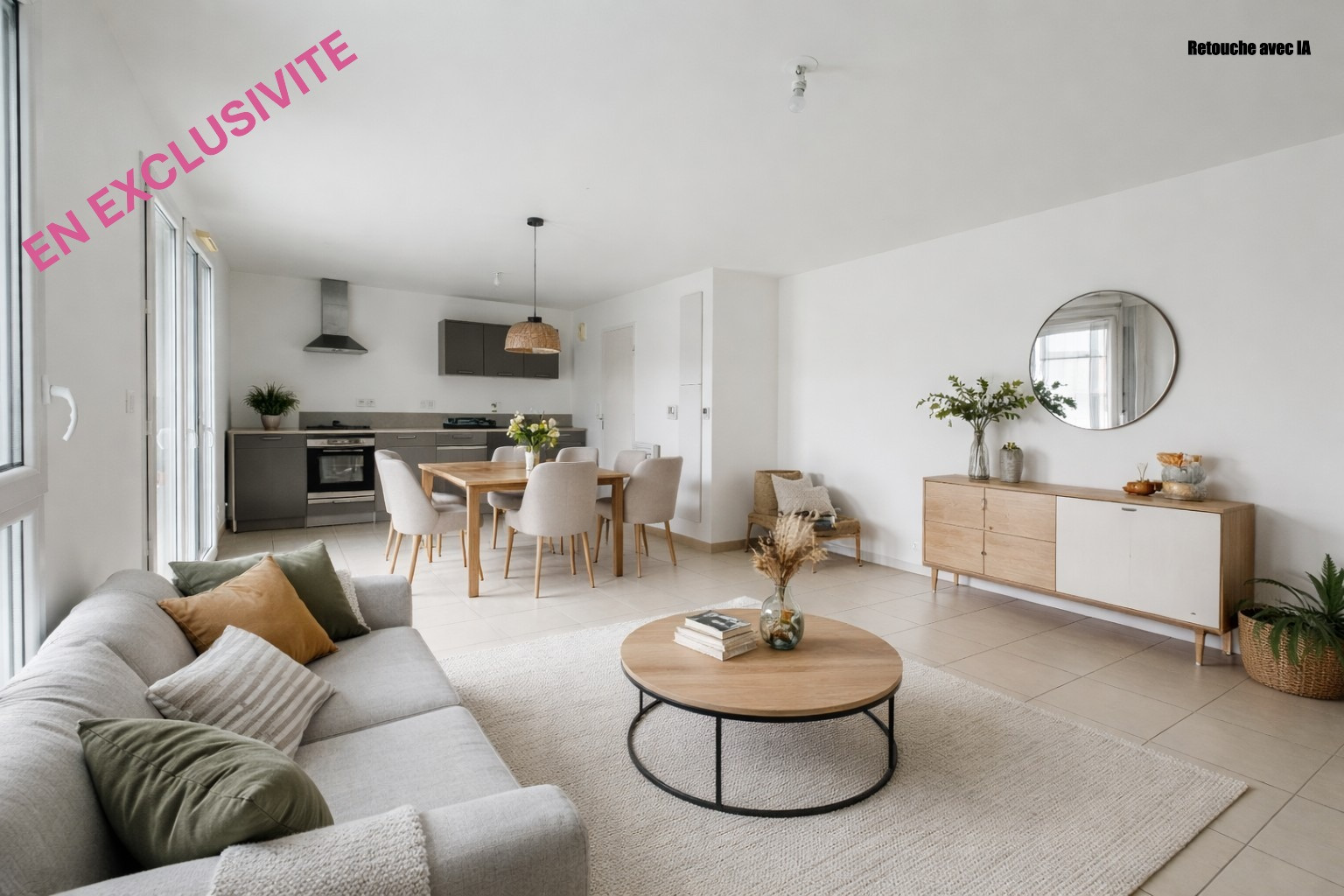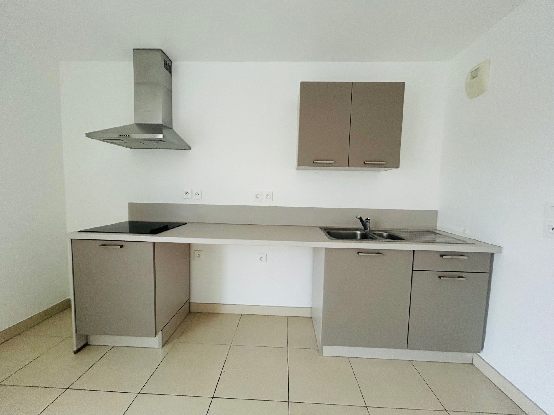 Une cuisine équipée indépendante, fonctionnelle et contemporaine donnant accès à une terrasse d'en...