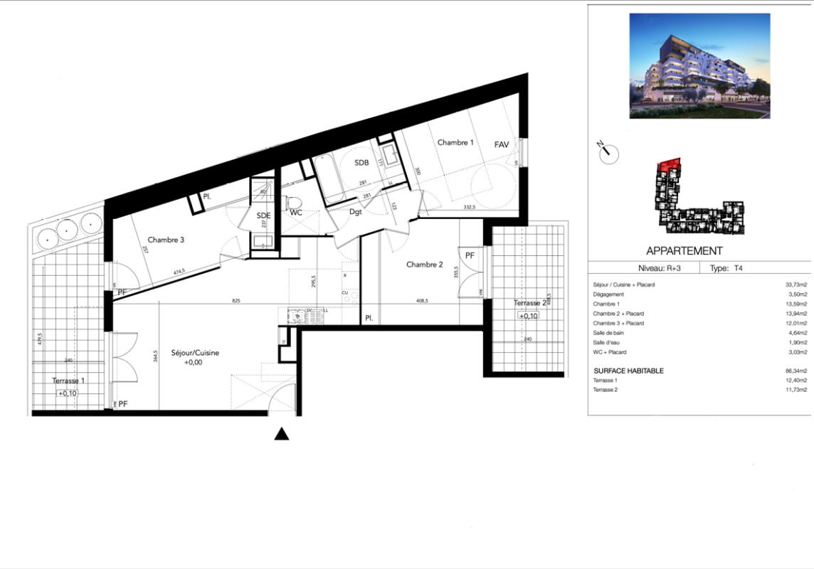 Rarissime et exceptionnel !!! Appartement T4 offrant 80 m² avec terrasse de 19 m² au 5° étage d'une résidence de standing neuve avec ascenseur, très beau espace verts... En frais de notaire réduits...