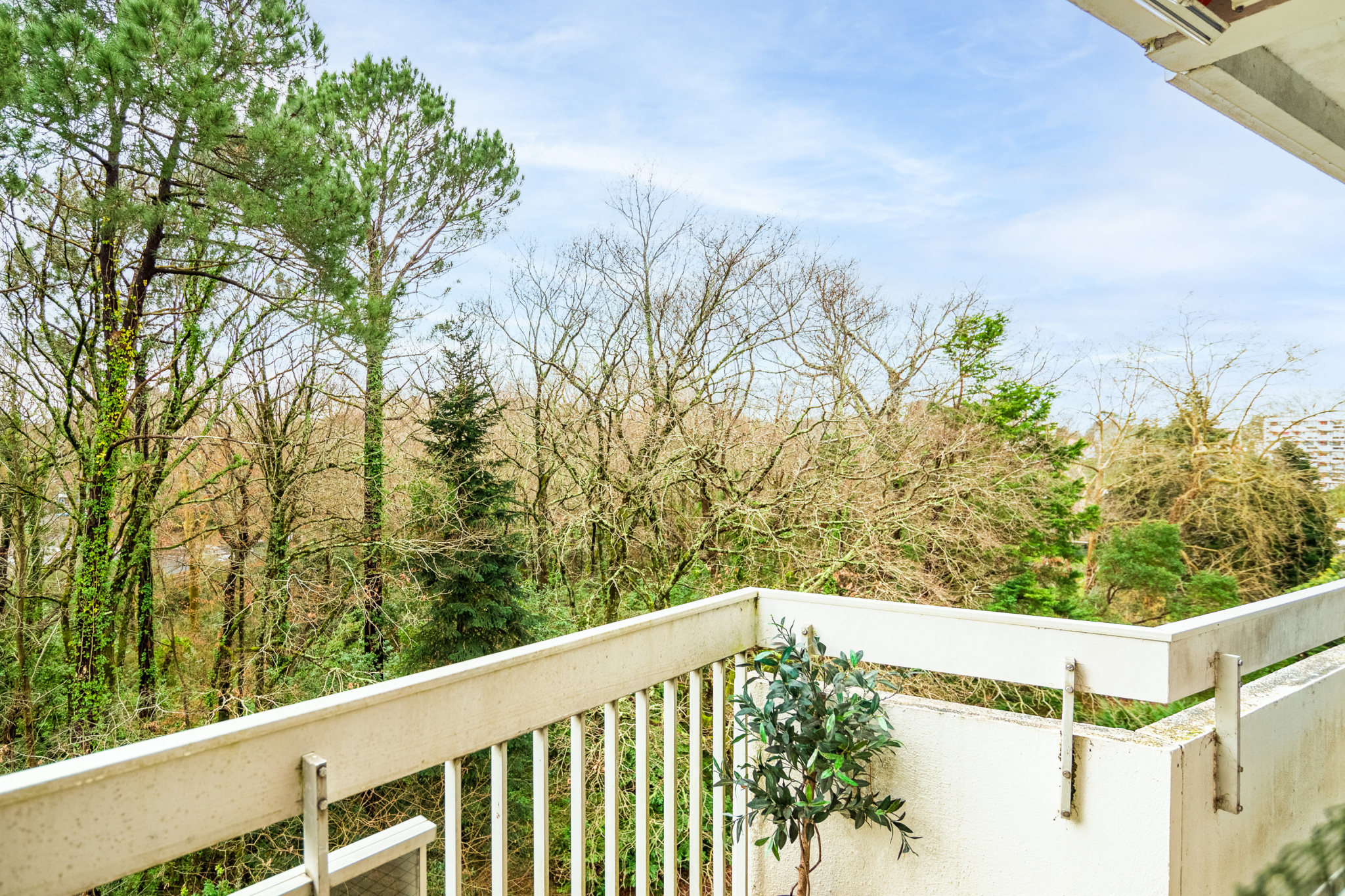 Exclusivité. Proximité aéroport et situé au sein d'un parc arboré, appartement de type 2 de 52 m2, plein sud et sans vis à vis, au 4 ème étage avec ascenseur comprenant une entrée, une pièce de vie ouverte sur la terrasse, une cuisine rénovée et équipée, ...