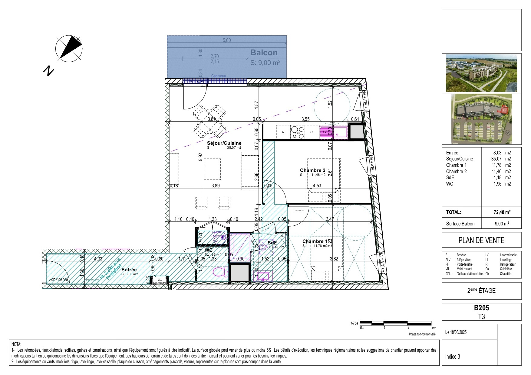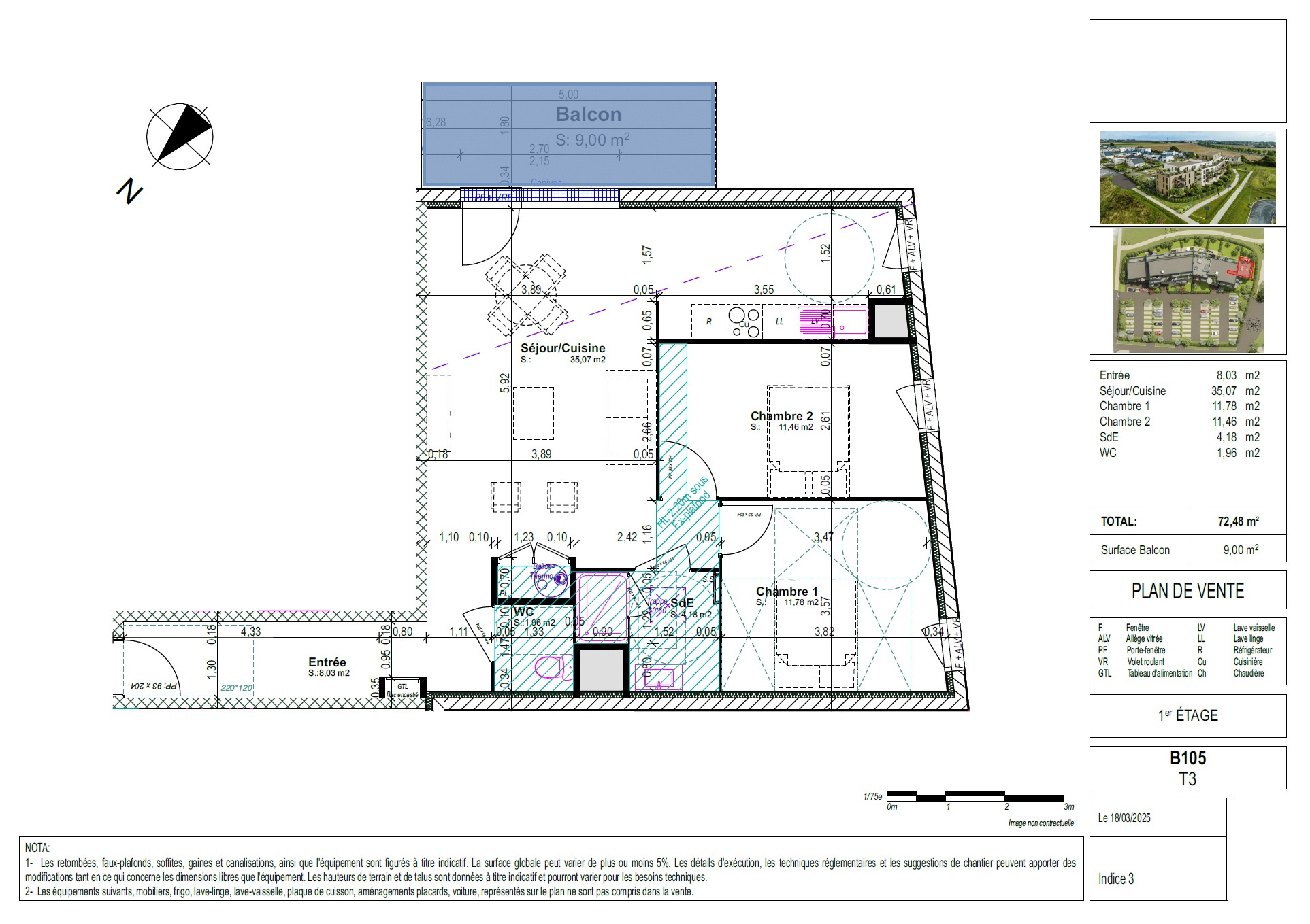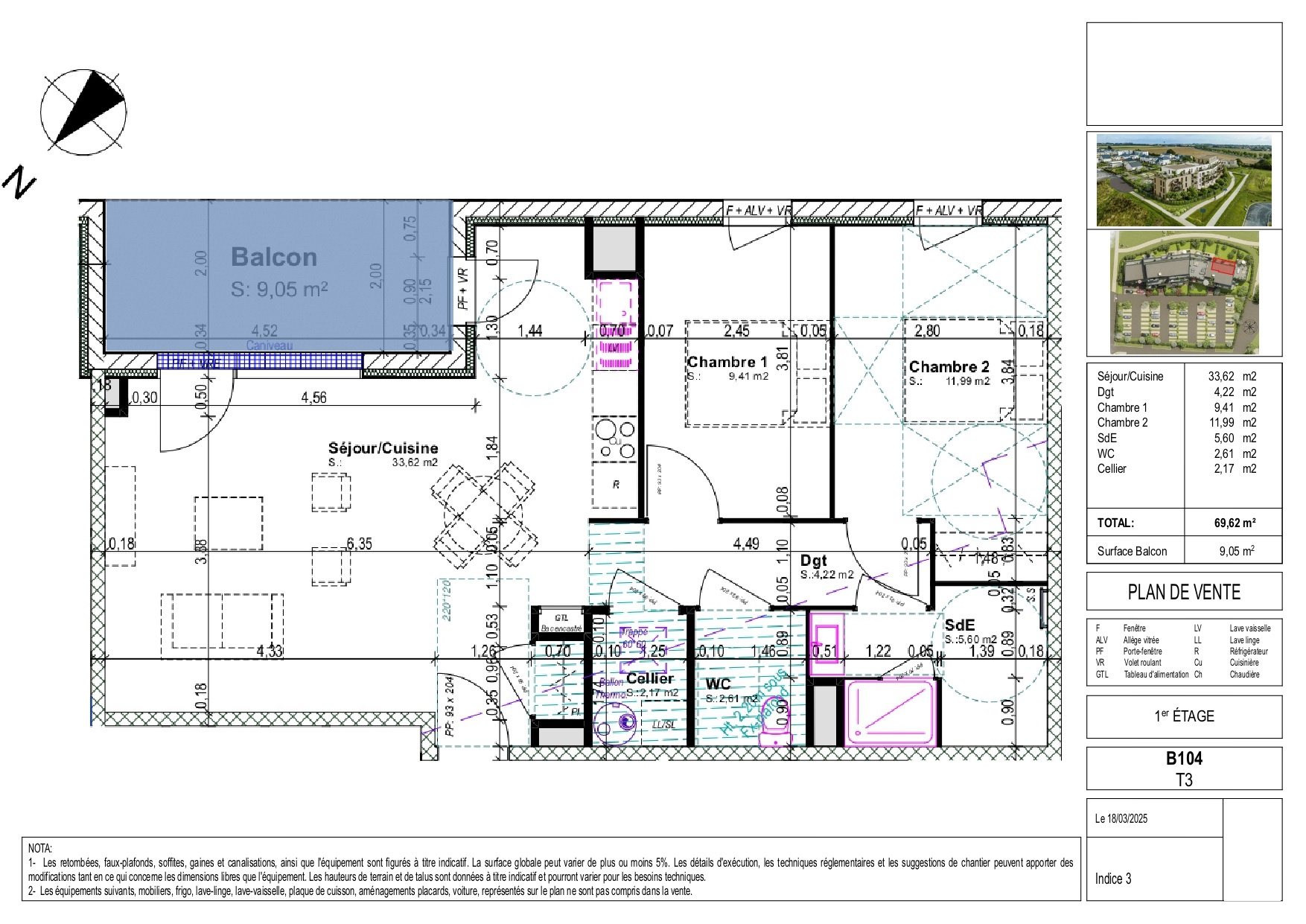 Nuances Immobilières vous propose à Blainville sur Orne à deux pas du centre commercial et de ses commerces, un grand 3Pièces de 72m2 exposé Sud et Ouest au 1er étage avec ascenseur offrant un balcon de 9m2.