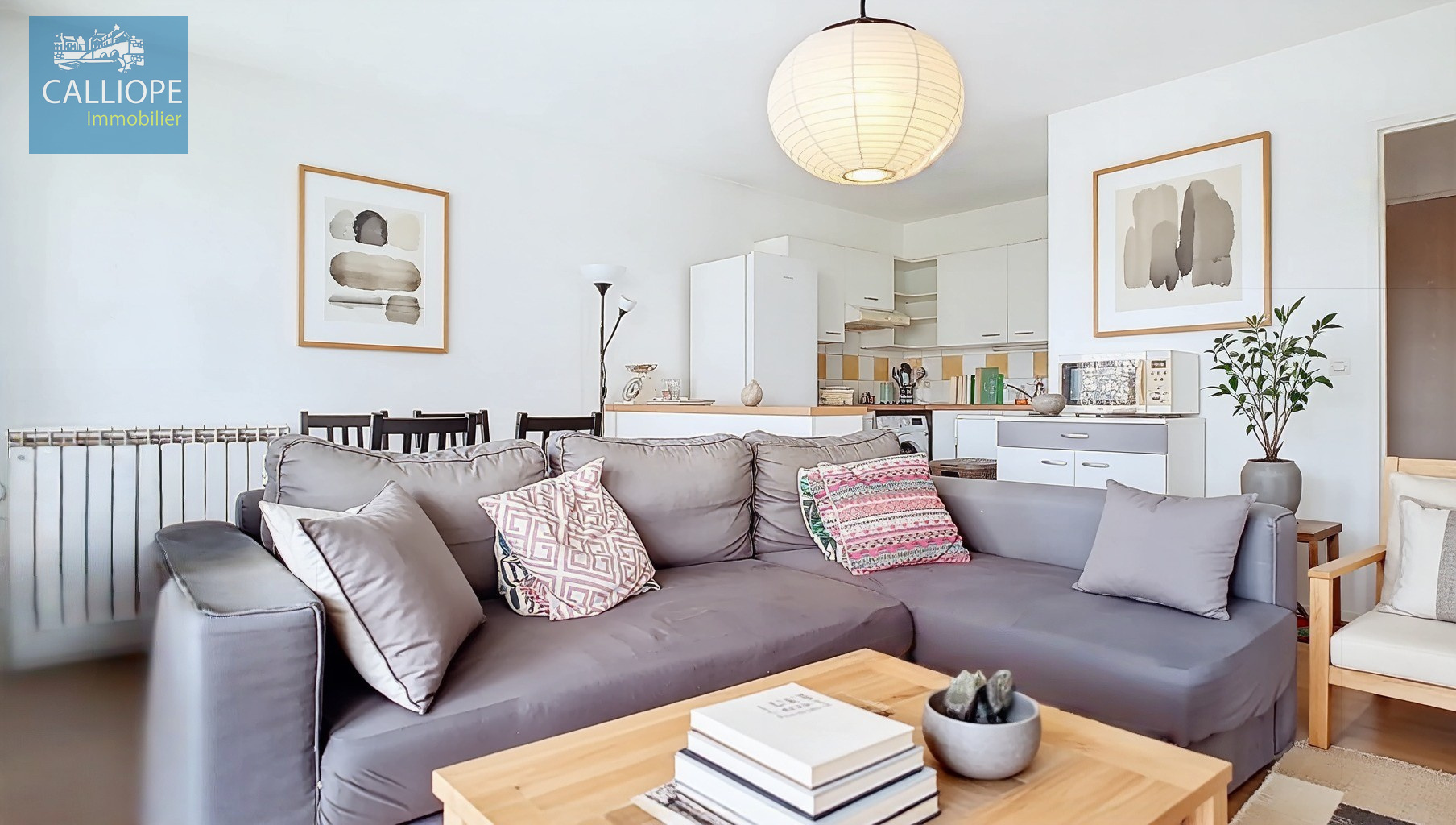 1 entrée avec placard, 1 séjour avec coin cuisine aménagé, 2 chambres de 9.91 m2 et 9.40 m2 a...