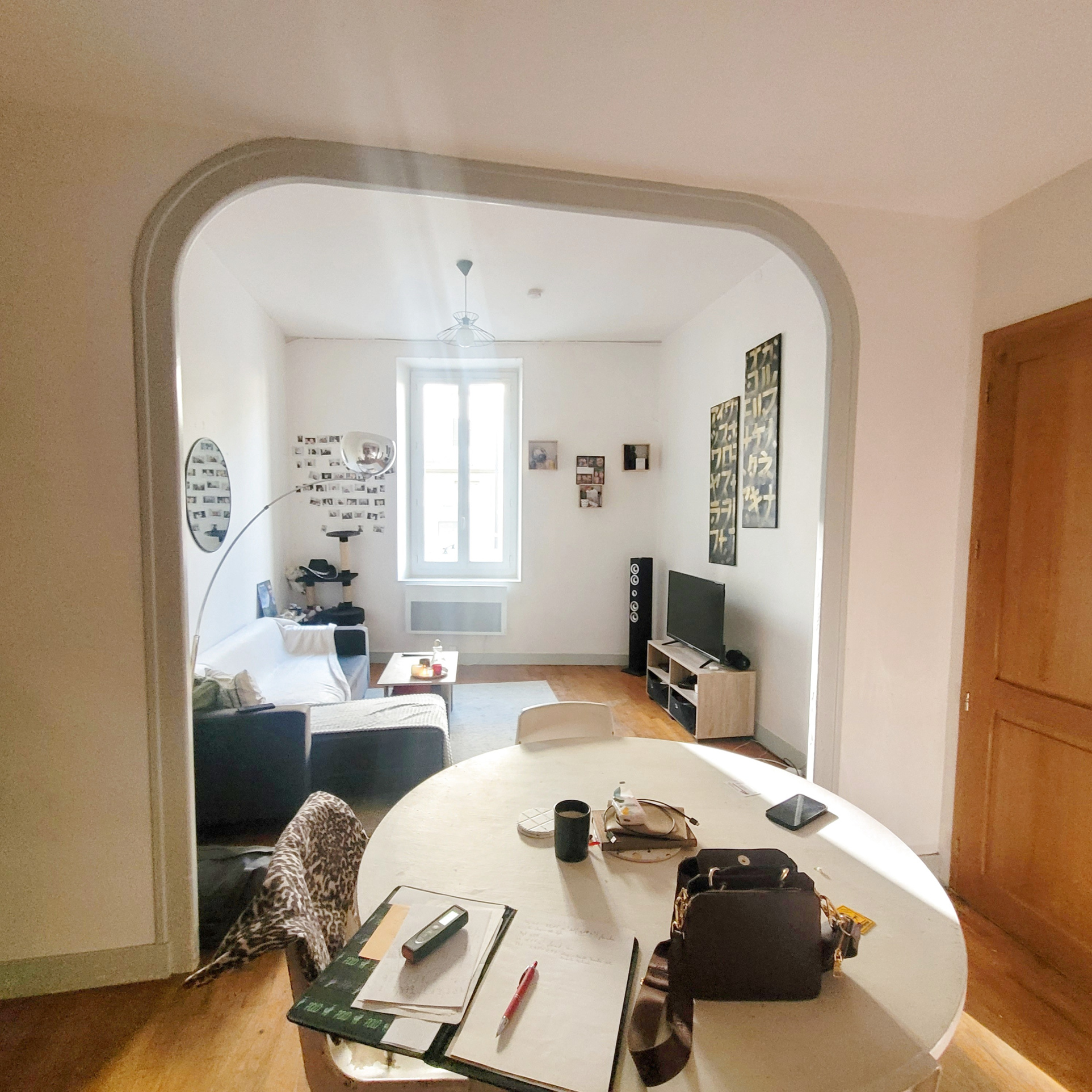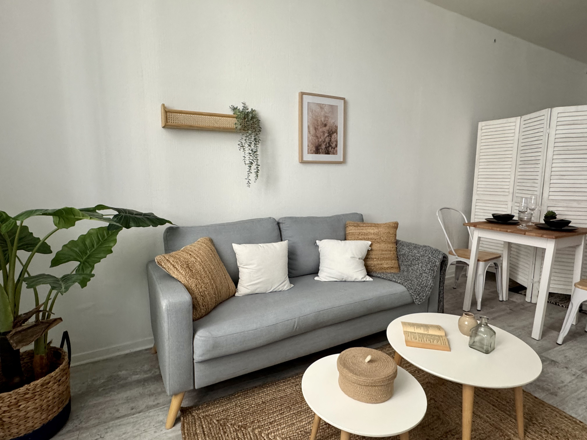 Situé au rdc d'un immeuble pierre entièrement rénové, vous trouverez cet appartement composé d'une grande pièce de vie lumineuse, d'un coin cuisine séparé et d'une salle d'eau avec toilette.