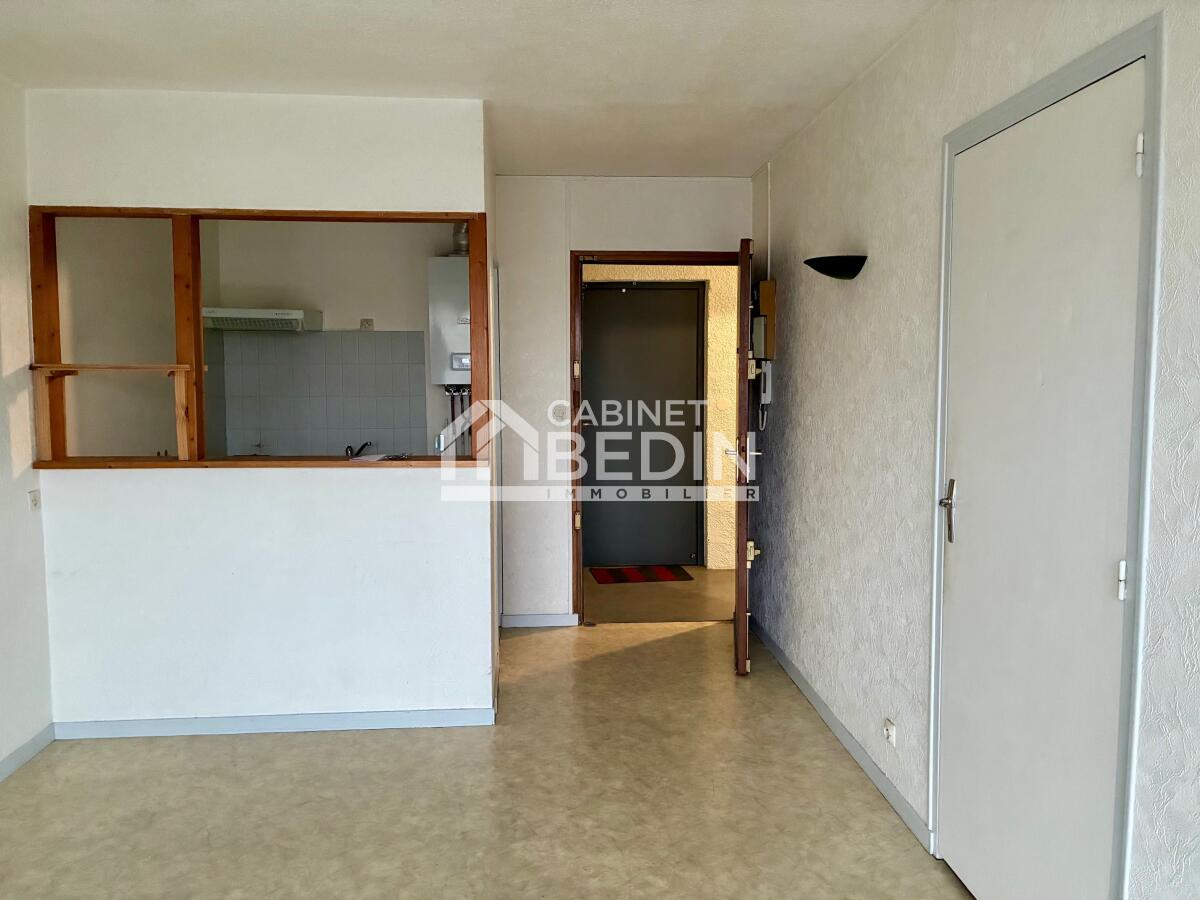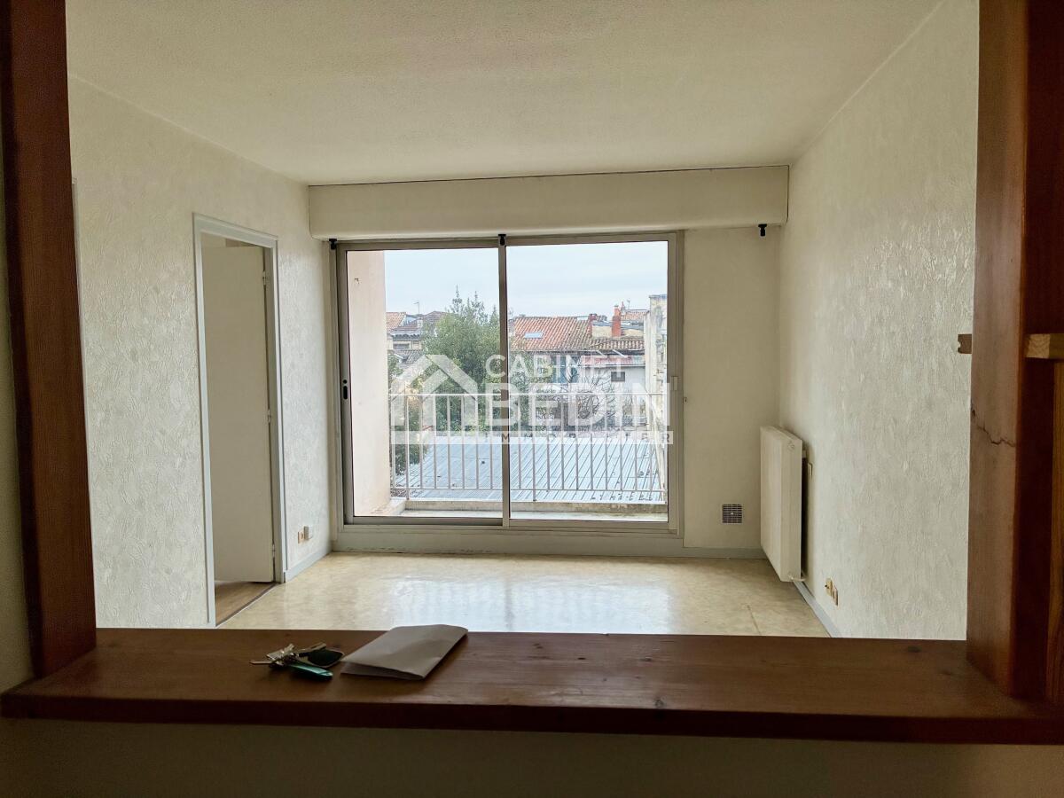 Secteur Gare Saint-Jean. Appartement T1 à deux pas de la gare situé au 2ème étage d'une résidence des années 90'. Il se compose d'une entrée avec placard, d'une salle de bains avec WC, et d'un séjour lumineux avec cuisine ouverte, donn...