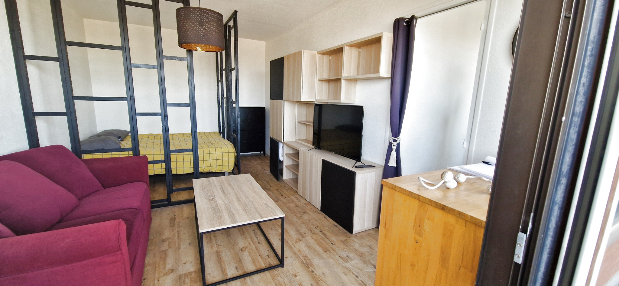 Grand Studio fonctionnel, exposé Sud sans vis à vis.