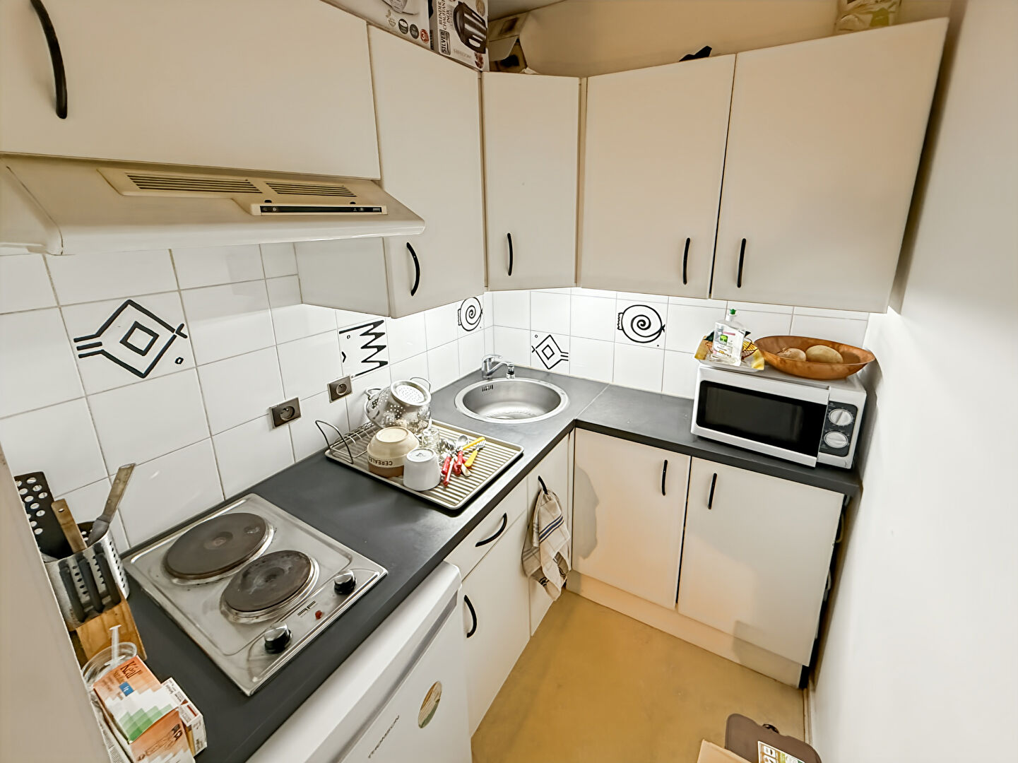Quartier Chartrons, dans rue recherchée, appartement en dernier étage d'une petite copropriété pierre avec faibles charges. Surface au sol de 26 m² pour ce T1 Bis avec entrée, petite cuisine séparée aménagée et équipée, séjour avec cheminée décorative, po...