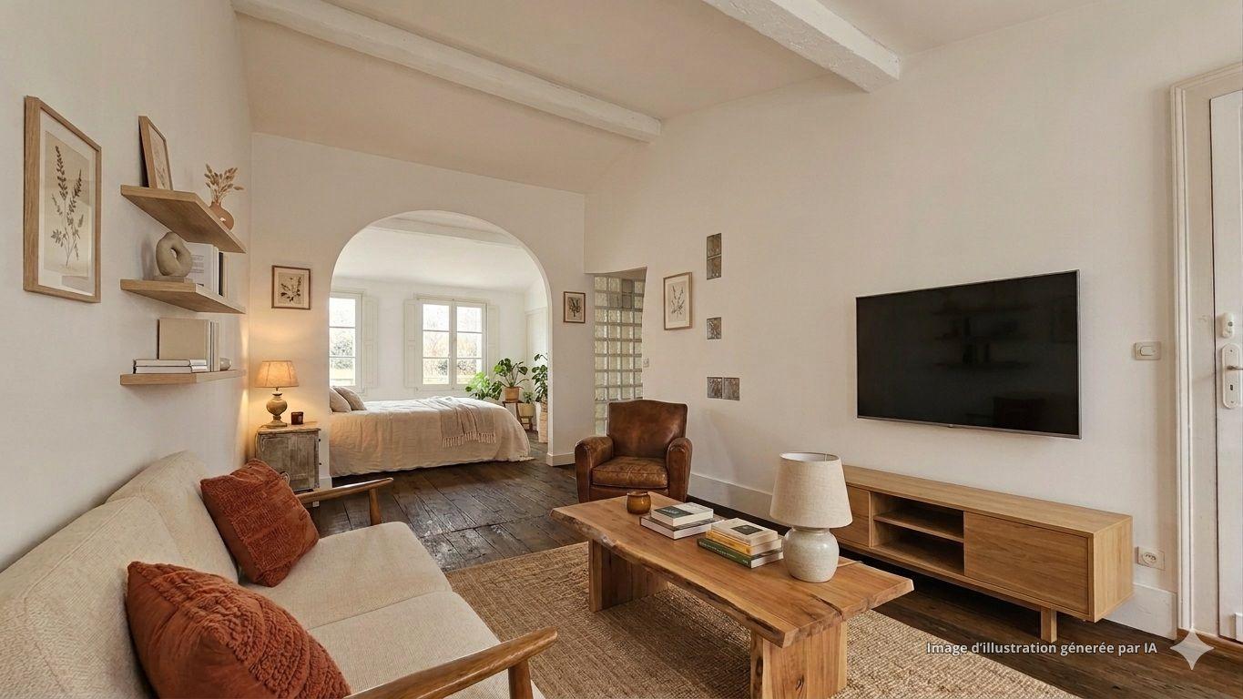 A34600JLC33 - Idéalement situé à seulement 50 mètres de la porte de Cailhau, cet appartement de 42 m² allie confort et caractère. Il dispose d'un agréable séjour de 21 m² avec kitchenette, parfait pour des moments de convivialité. La chambre de 11 m² offr...