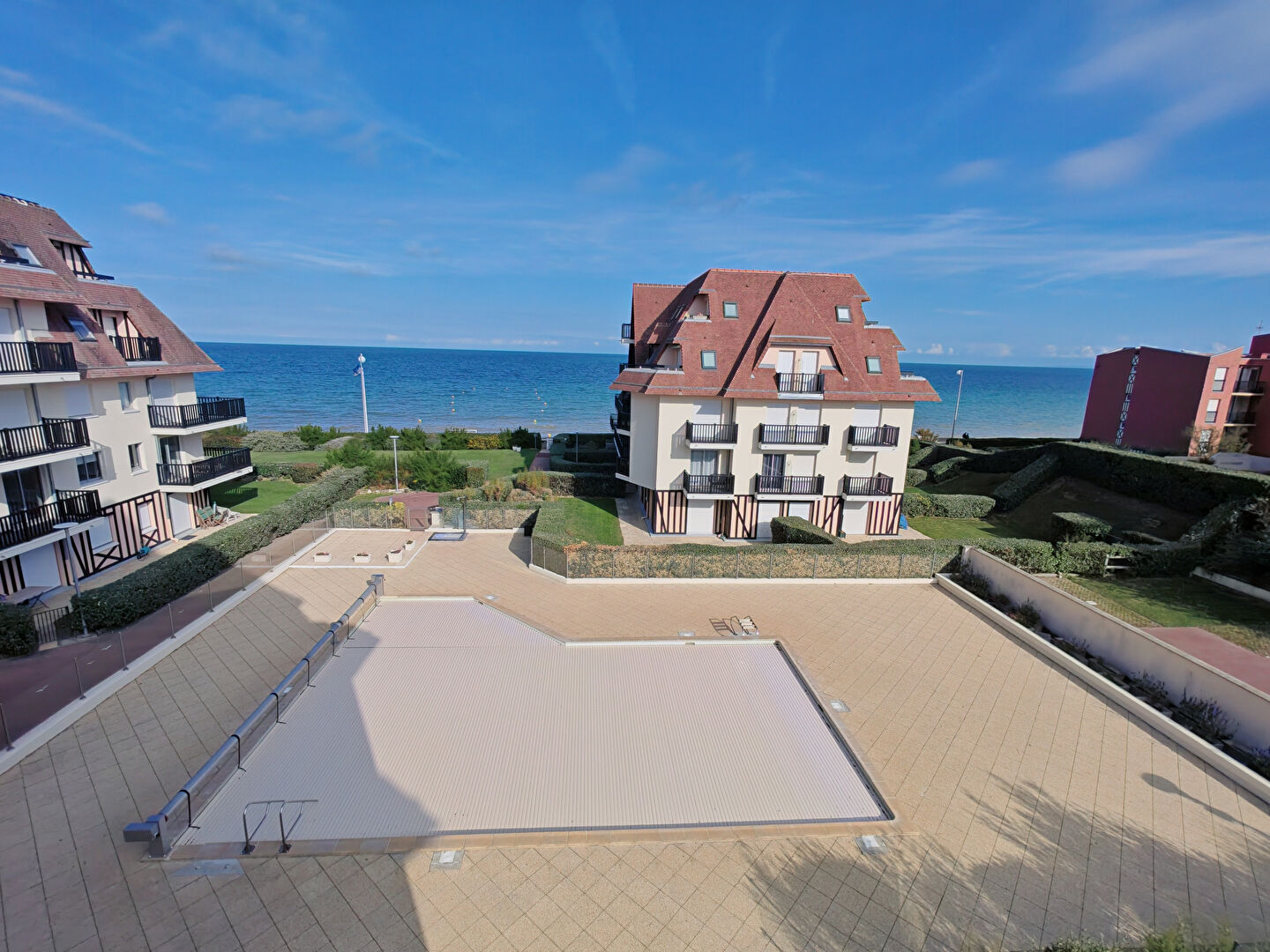 Dans une résidence fermée et de style normand, à quelques pas de la plage et en accés direct, venez visiter cet appartement 3 pièces situé au 1er étage et composé d'une entrée, un séjour, une kitchenette ouverte et équipée, deux chambres, une salle de dou...
