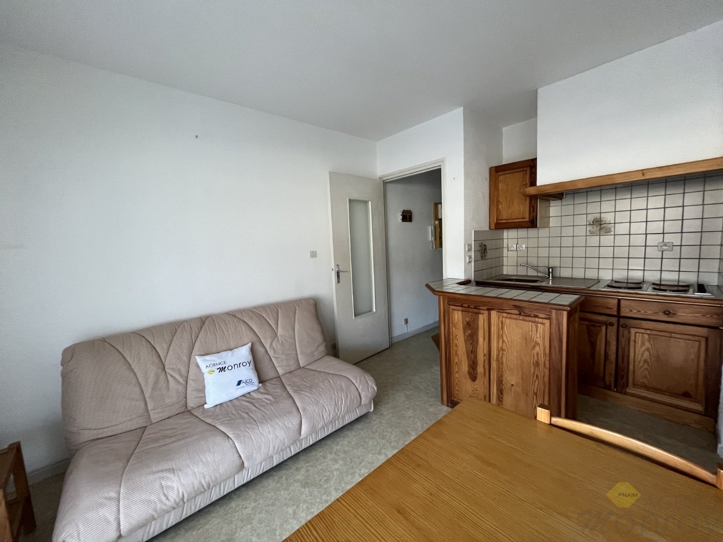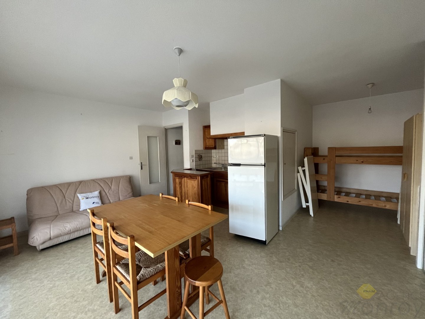 Salon/Séjour avec coin cuisine équipé, 2 chambres, salle de bain, wc séparé.