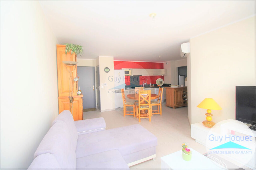 Canet Plage exclusivité rare T3 Mezzanine en duplex au dernier étage et en angle d'une résidence au bord des marinas du Port. Composé d'une entrée avec rangement, un séjour avec cuisine américaine équipée donnant sur une terrasse de 14.50 m² avec vue...