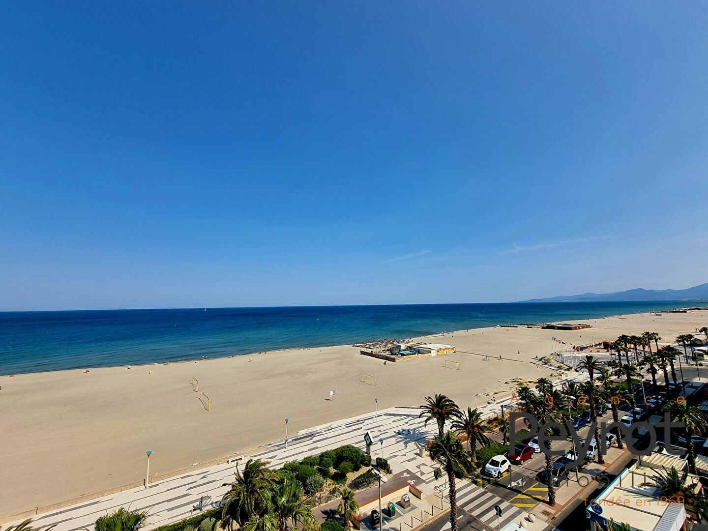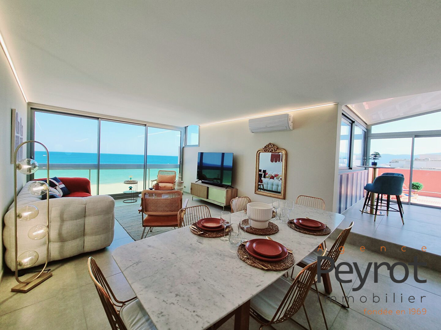 Emplacement idéal! Venez découvrir ce magnifique appartement entièrement rénové, traversant et baigné de lumière. Il offre une superbe vue sur la mer, le Canigou et l'étang depuis le 5ème et dernier étage. Belle entrée avec placards, grande cuisine équipé...