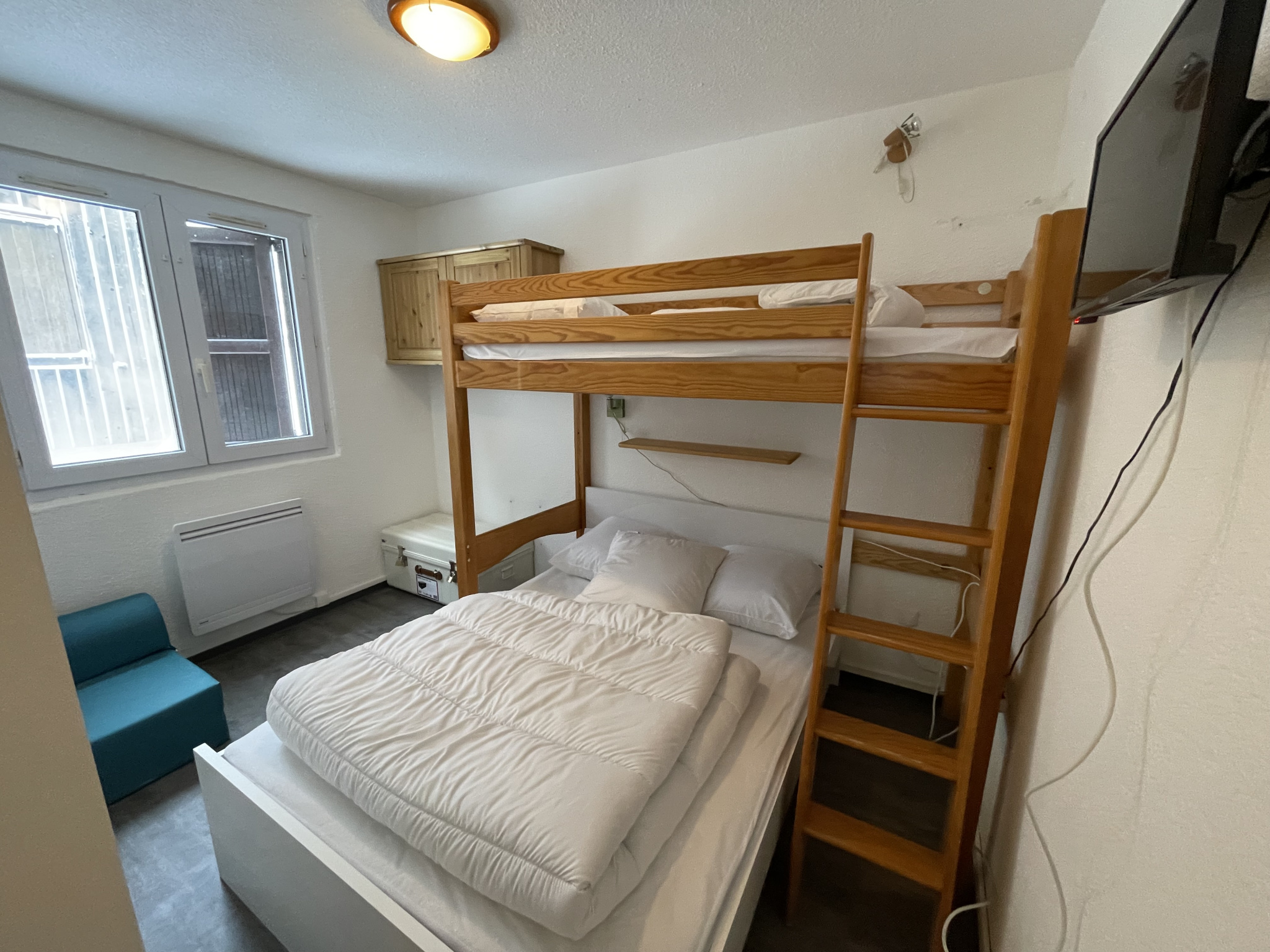 Ce joli studio cabine mezzanine situé dans la résidence Les Portes du Sud ,secteur Font d'Alagnon, est composé d'une entrée avec un lit simple en coin cabine, salle d'eau et WC indépendant, un séjour lumineux composé du coin cuisine et coin salo...