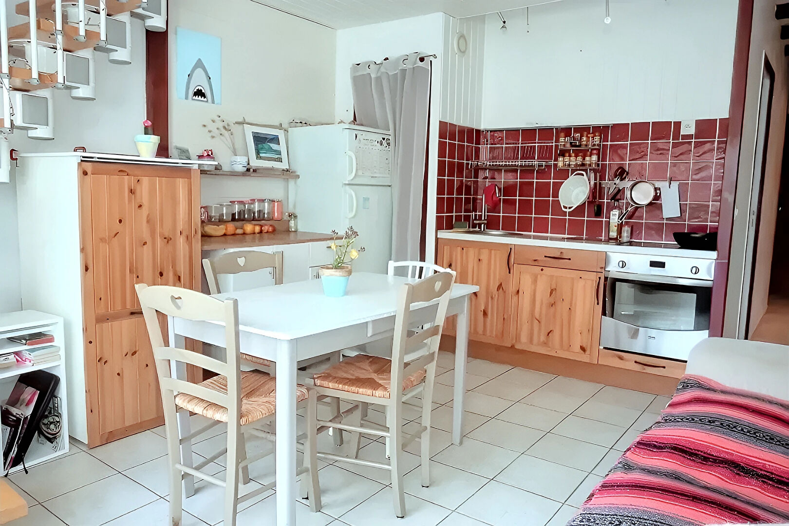 Son séjour - cuisine donnant sur une terrasse exposée Sud, une petite chambre et salle de bains au même niveau. Au 1er étage, vous arriverez sur u...