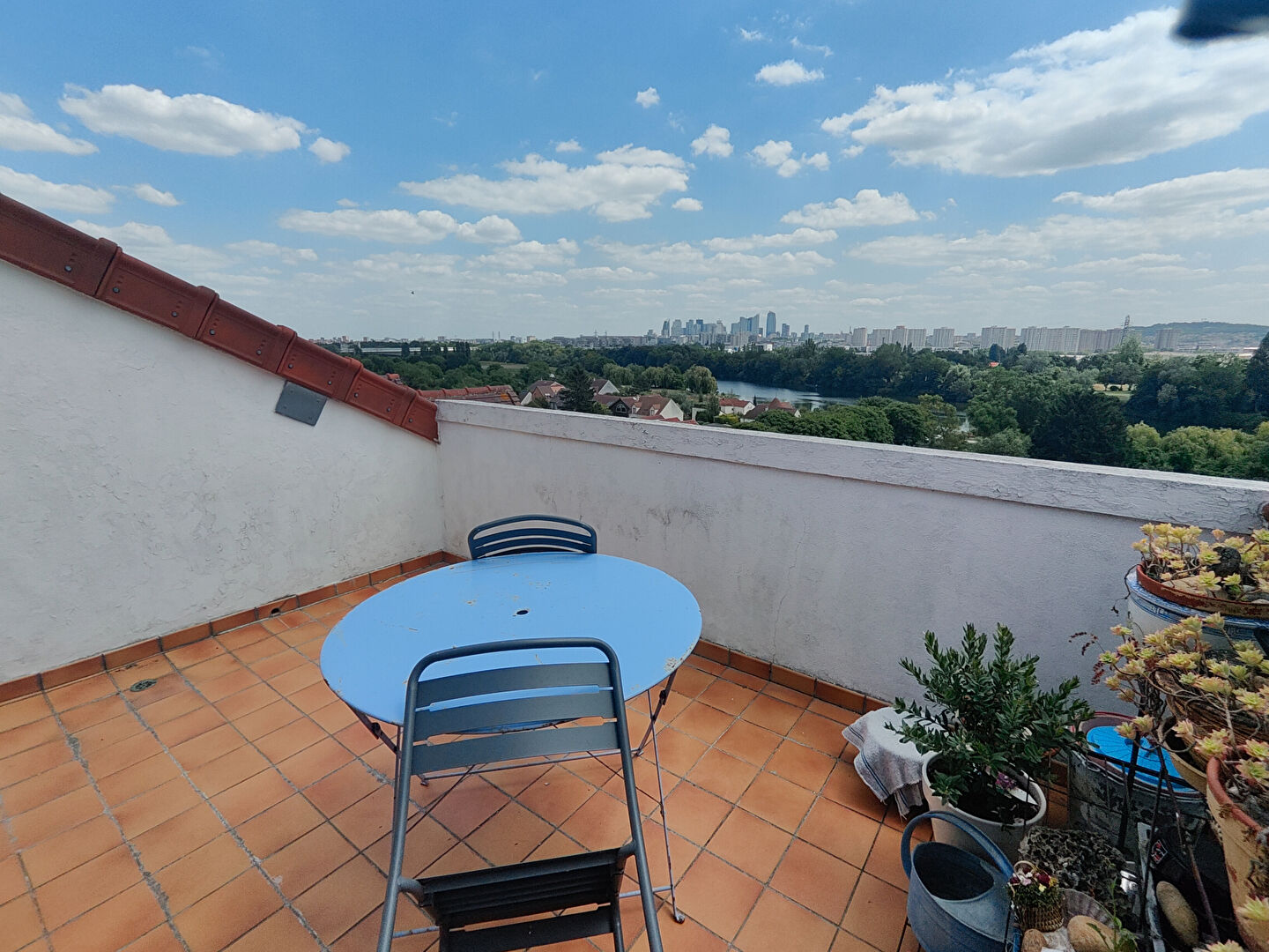 A.F.R immobilier vous présente en nouveauté ce 3 pièces en duplex, situé au coeur du village de Carrières-sur-Seine. Ce bien dispose d'une grande terrasse exposée plein sud offrant une vue imprenable sur la Seine et Paris.