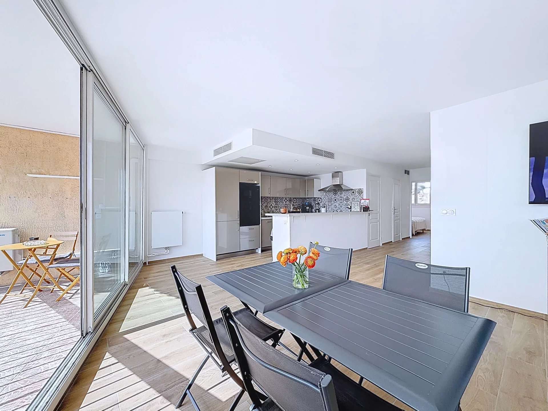CARROS : Situé en centre-ville, proche de toutes les commodités, appartement de type 2 pièces d'une surface habitable de 58.76 m2, comprenant : entrée avec placards, séjour/salon d'environ 18 m2 avec cuisine indépendante aménagée s'ouvrant sur b...