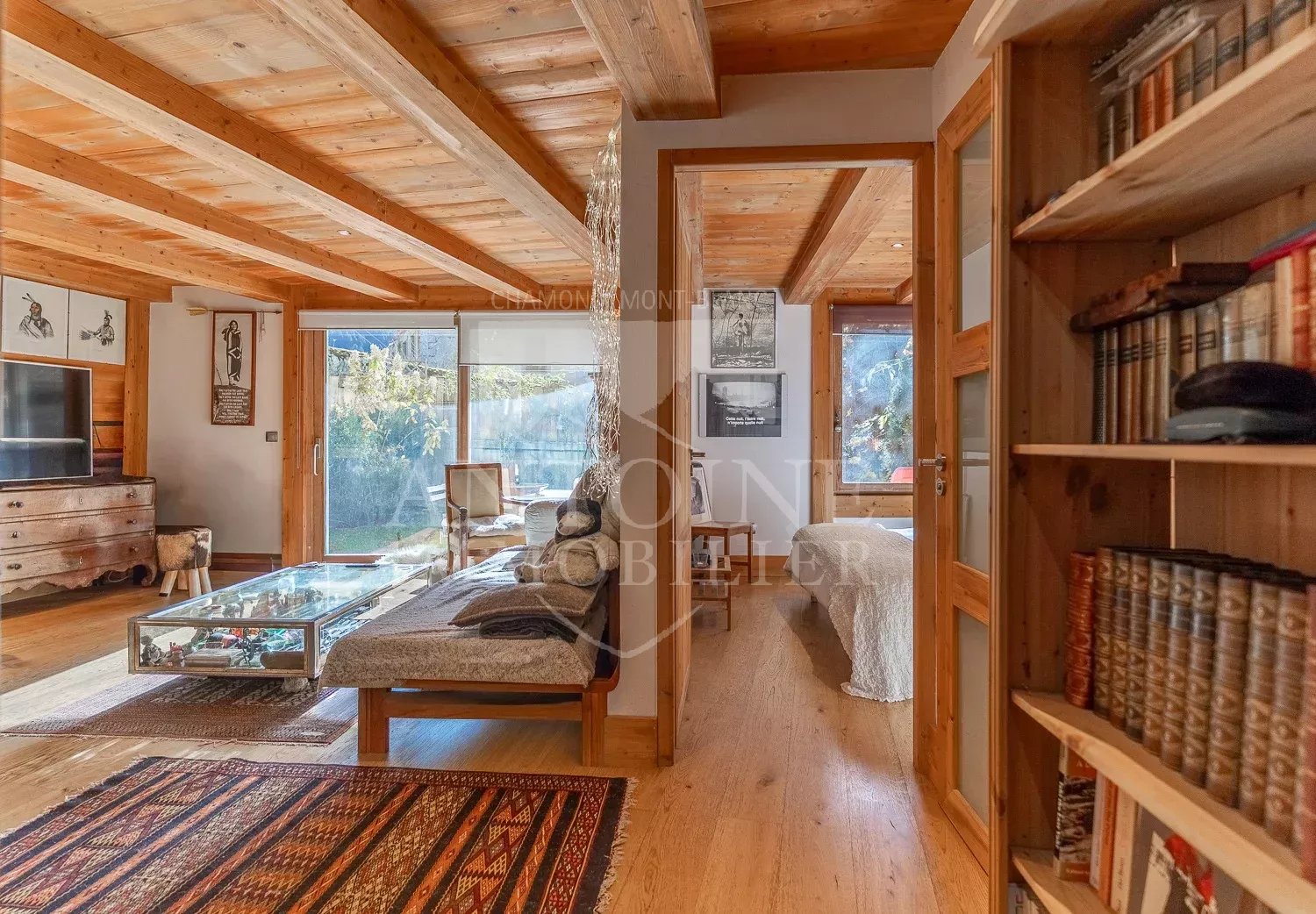 Dans une maison chamoniarde typique des années 1920, au calme du centre ville, un apartement, 1er étage, balcon vue Mont-Blanc et tout le massif, une chambre parentale avec salle de bains, deux chambres, une salle de bains, une cuisine moderne, à 4 minutes à p...