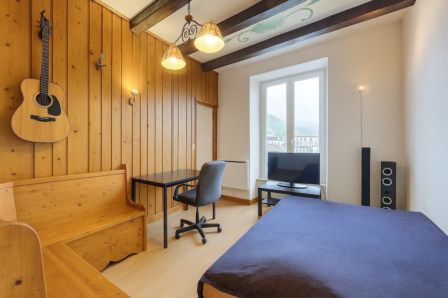 Charmant appartement de 2 pièces au troisième étage d'une résidence historique, en plein coeur de Chamonix. Il se compose d'un vaste séjour avec kitchenette, d'une grande chambre, d'une salle de bains avec WC ainsi que d'un...