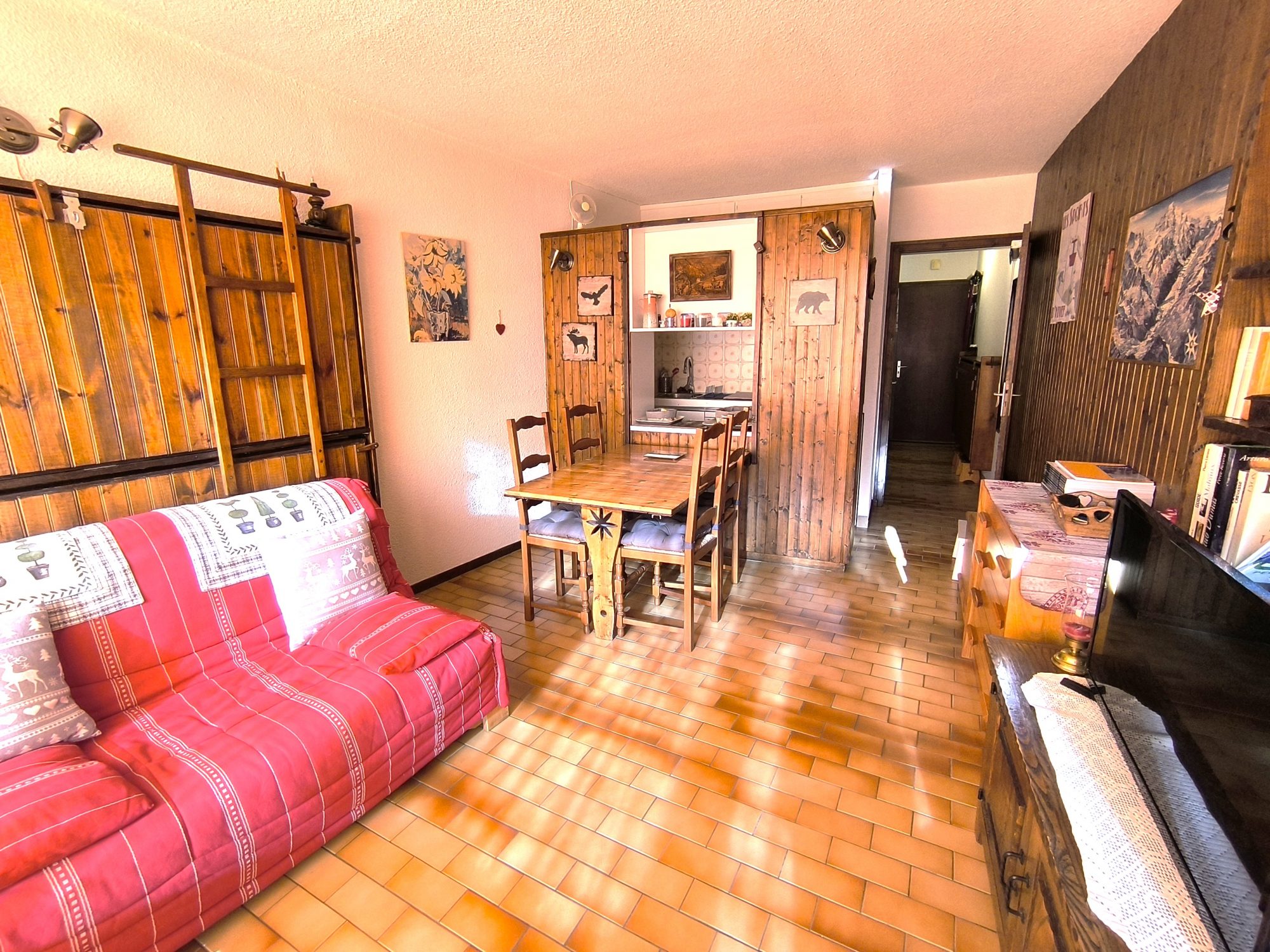 Charmant appartement de 2 pièces au troisième étage d'une résidence historique, en plein coeur de Chamonix. Il se compose d'un vaste séjour avec kitchenette, d'une grande chambre, d'une salle de bains avec WC ai...