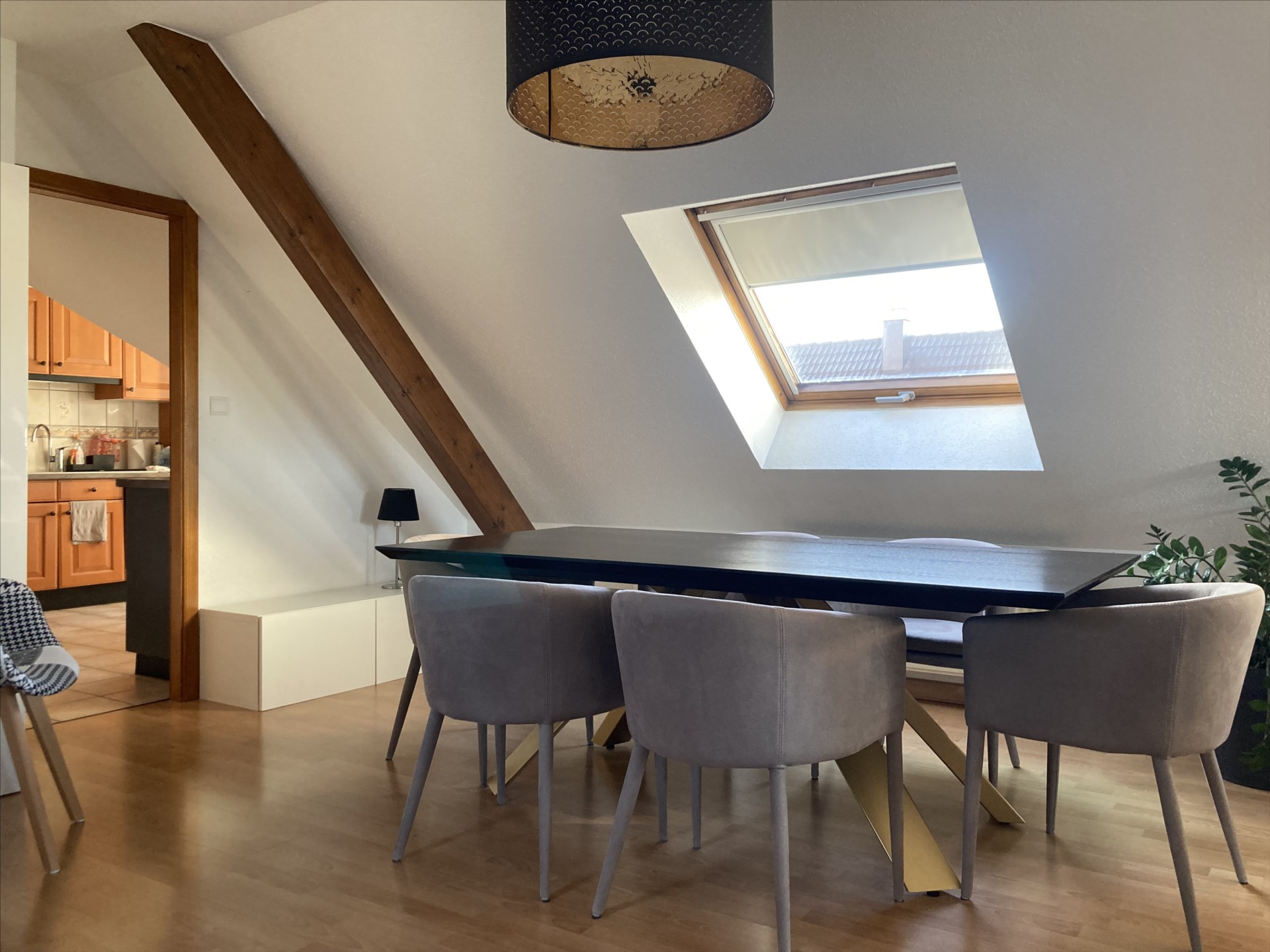 A COLMAR Quartier Sud, bel attique traversant d'une surface de 98 m2, au 4ème et dernier étage avec terrasse Sud et balcon sur trois côtés offrant une vue magnifique sur les montagnes, comprenant une grande entrée, un salon-séjour, une pièce cuisine, deux...