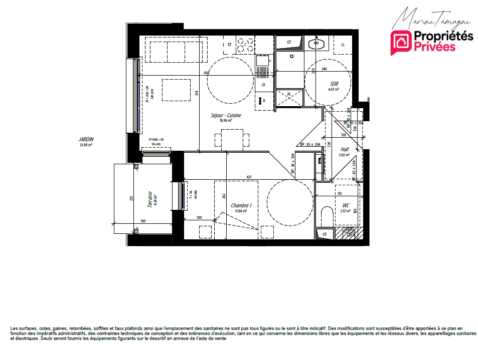 En exclusivité, dans résidence récente de 2021, beau 3 pièces de 69.72 m2 habitables, offrant : une entrée avec placard aménagé, une cuisine équipée ouverte sur séjour avec accès à la terrasse et jardin, deux belles chambres dont une avec placard aménagé, une ...