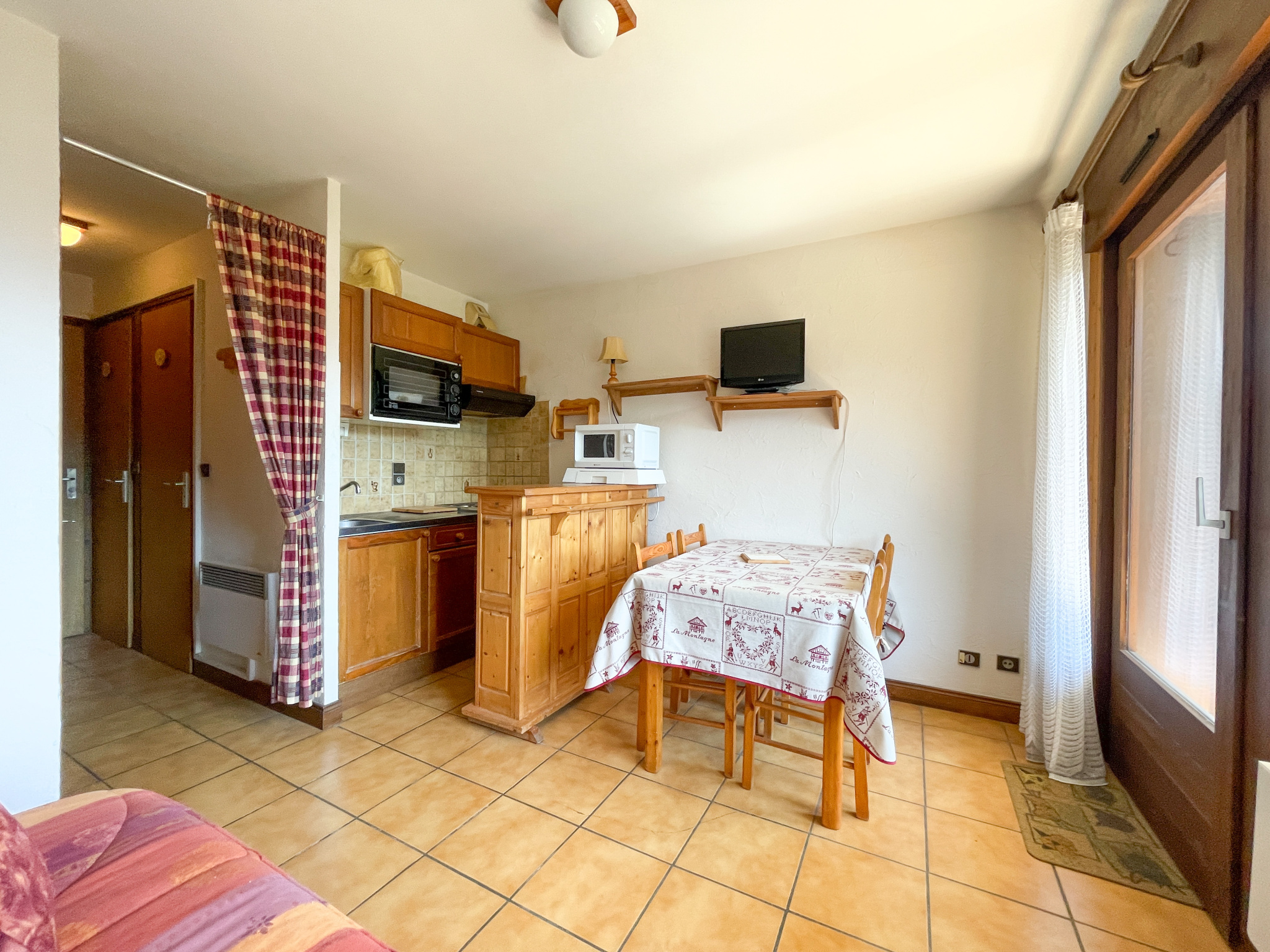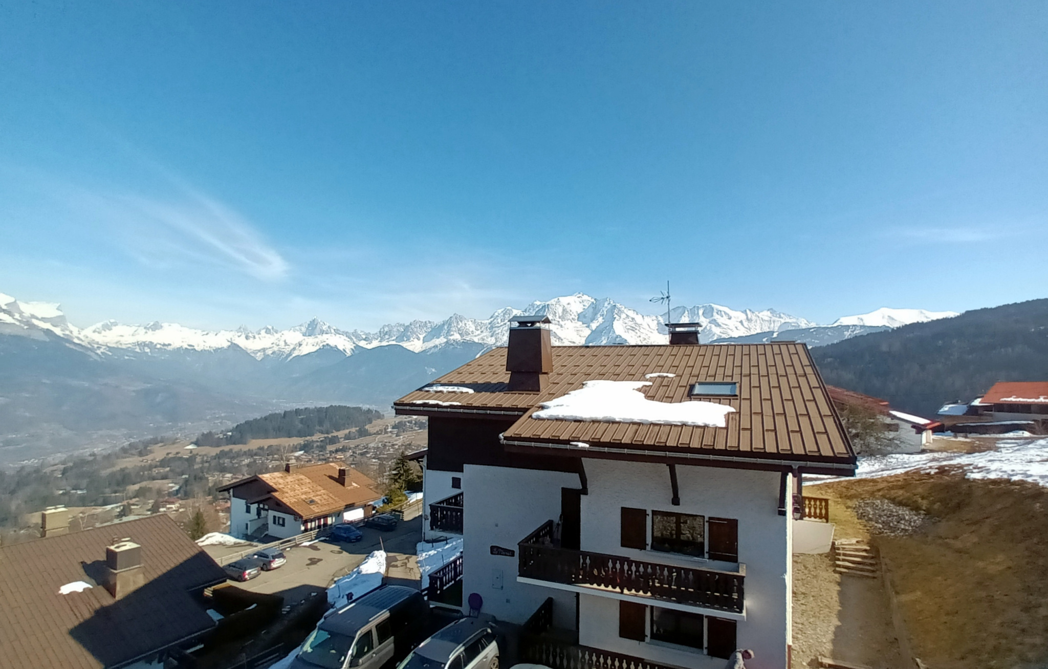 Dans une résidence très bien entretenue, agréable T2 de 28.3m2, très lumineux, situé à Cordon avec vue imprenable sur le Mont-Blanc.
