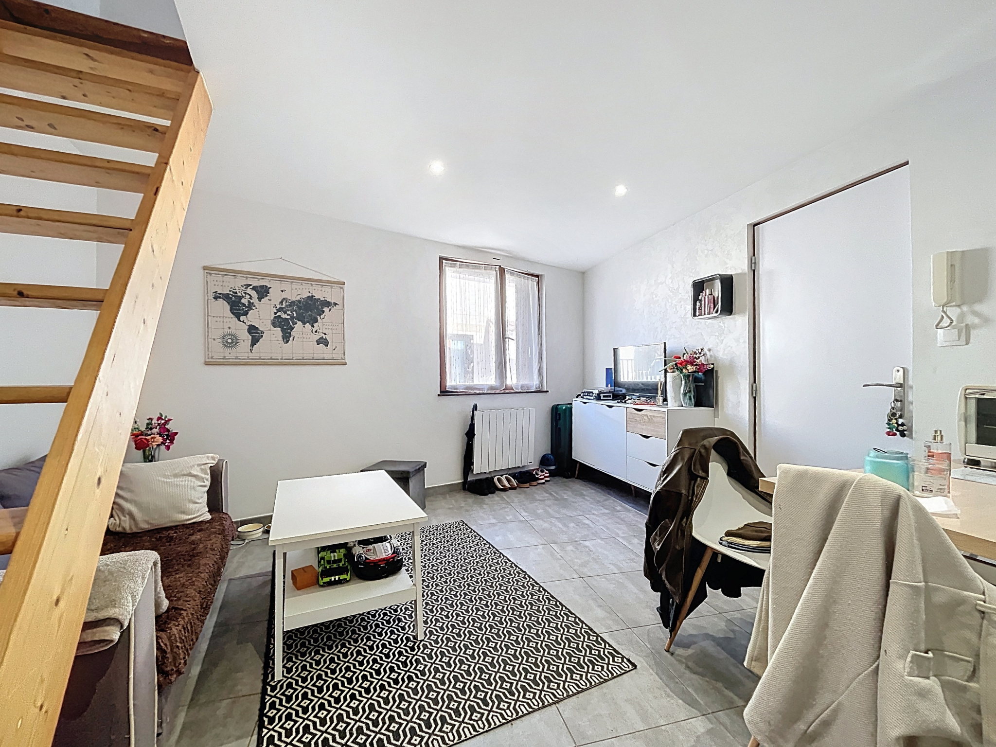 DIJON ANTIQUAIRES - Dans petite copropriété, type 1 de 33m2 situé au 1er étage. Pièce de vie avec cuisine, salle d'eau et mezzanine pour espace couchage. Prévoir rafraichissement.