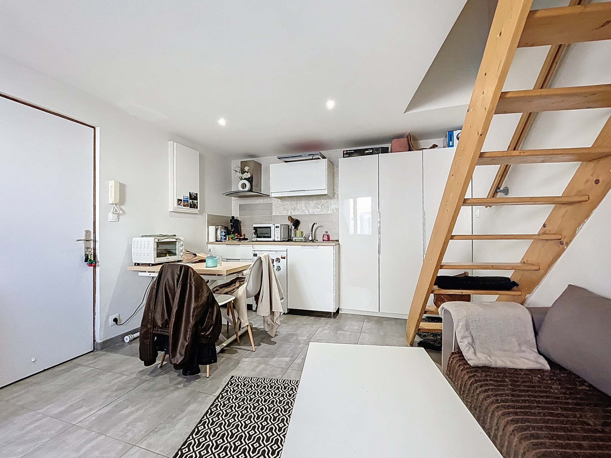 Il se compose d'une pièce de vie avec cuisine équipée et aménagée, un escalier mène à une chambre et une salle d'e...