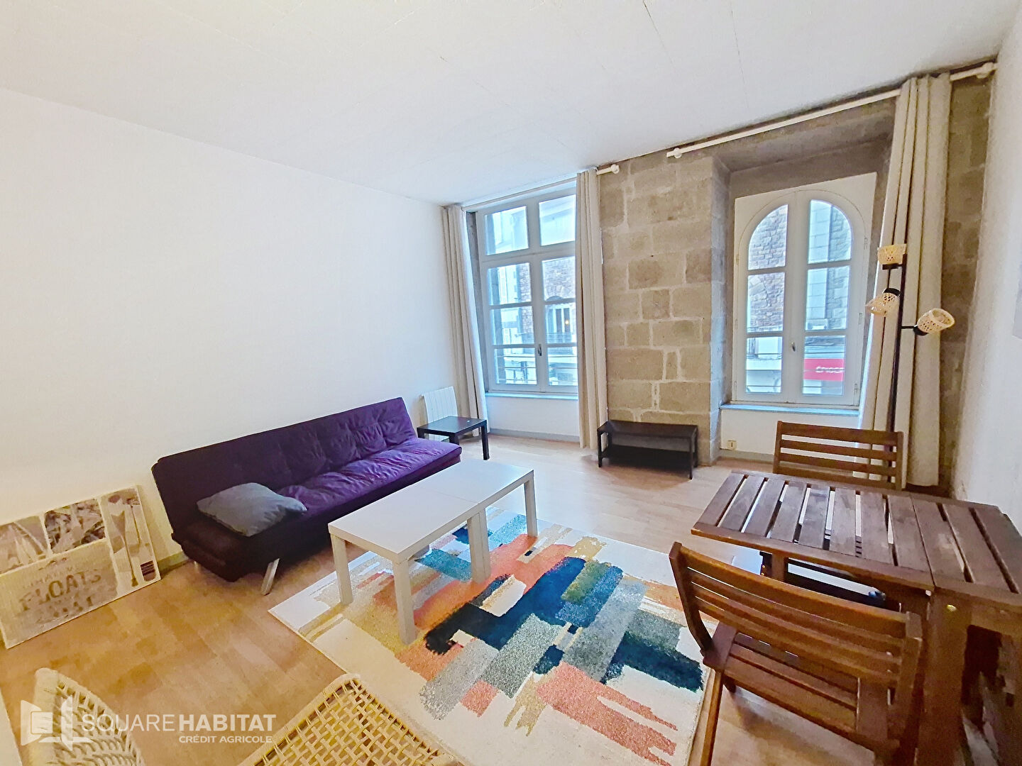 SAINT BRIEUC HYPER CENTRE HISTORIQUE Dans une résidence de charme en pierres cet Appartement de type T2 est composé d'une entrée avec cellier, un agréable séjour et sa cuisine semi ouverte aménagée, une très belle chambre, salle de bains et WC. MANDAT SER...