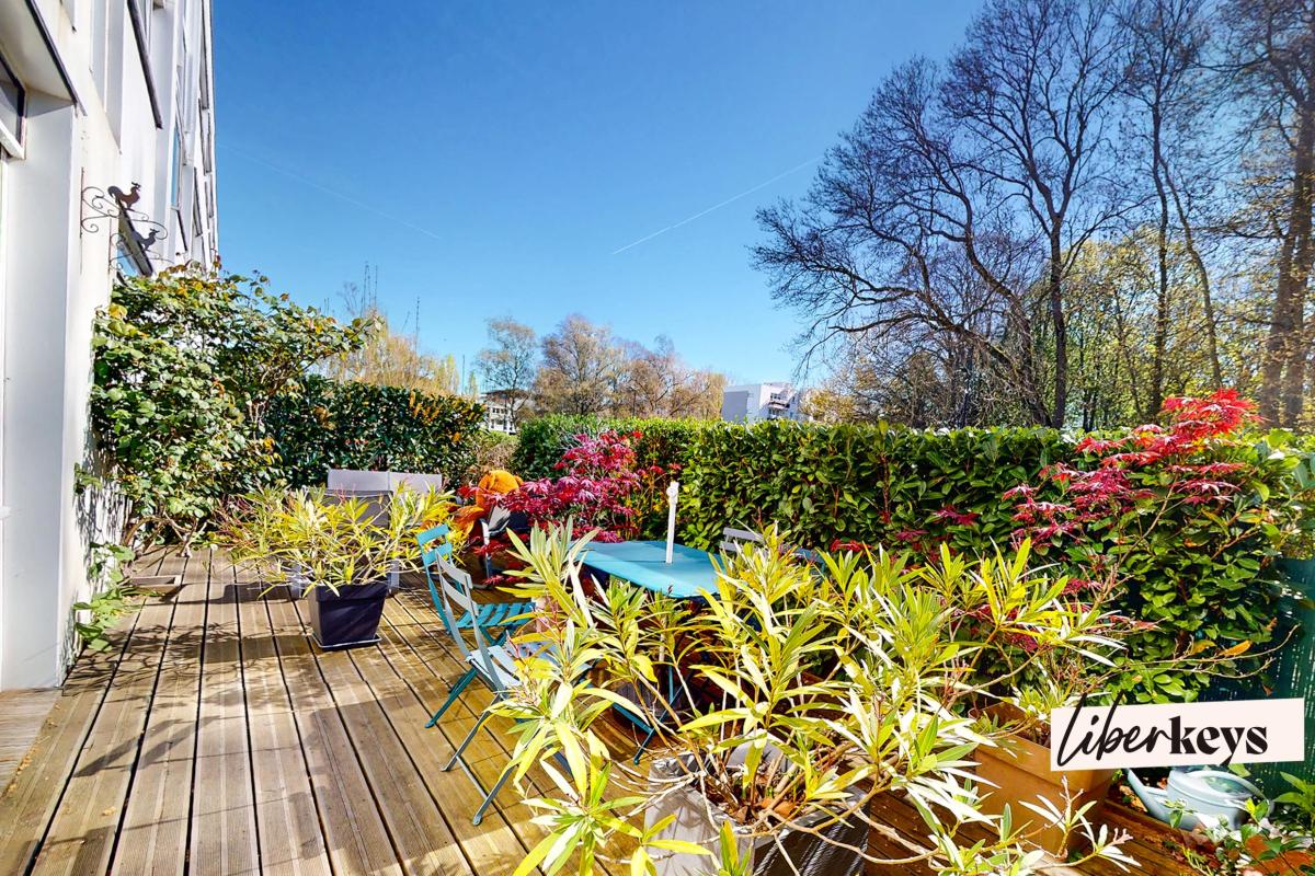 Superbe appartement de 134 m2 avec 37 m2 de terrasse arborée, orientée sud-ouest entièrement végétalisée. Les propriétaires ont pris un soin tout particulier à rénover et à réorganiser les espaces. Vaste séjour lumineux parquet Chêne ouvert sur la salle à mang...