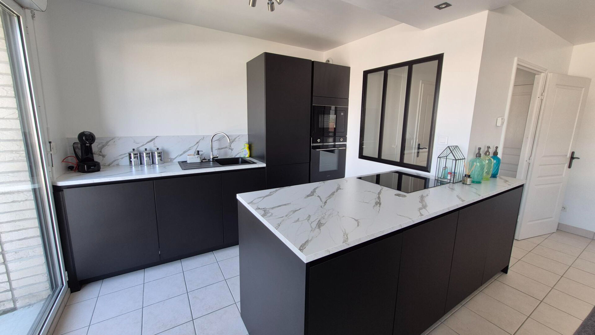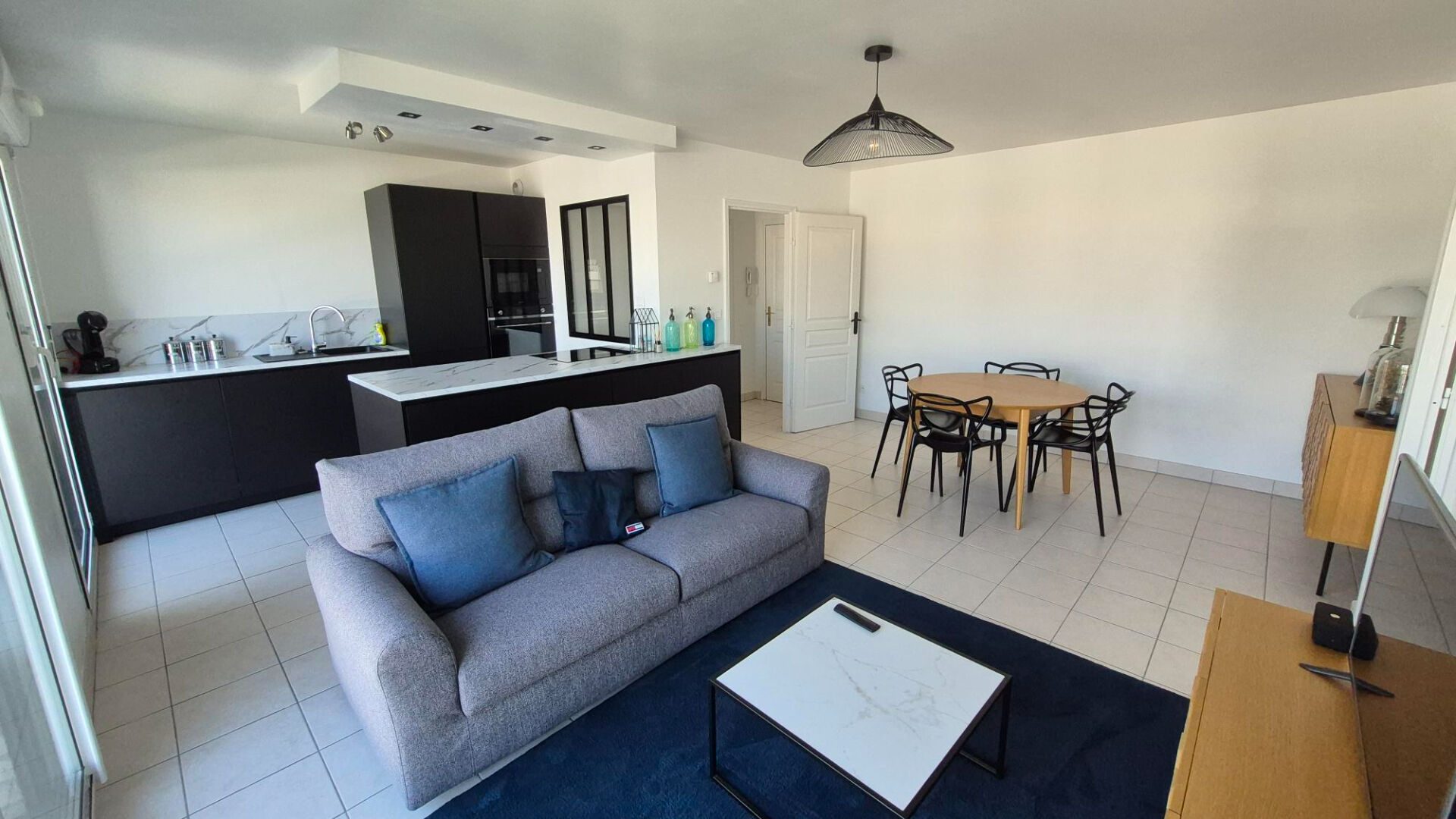 Séjour Baigné de lumière, cuisine ouverte équipée