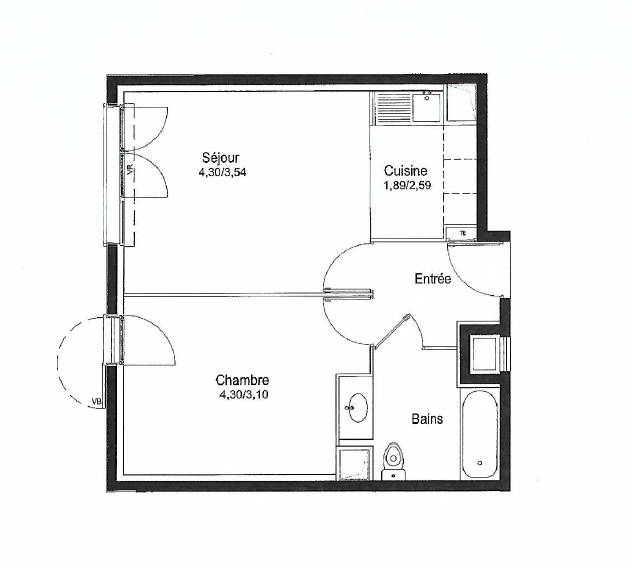 L'appartement situé au 1er étage avec ascenseur est composé de : une entrée deservant une salle de bains, une chambre de 12.29 m2, un sé...