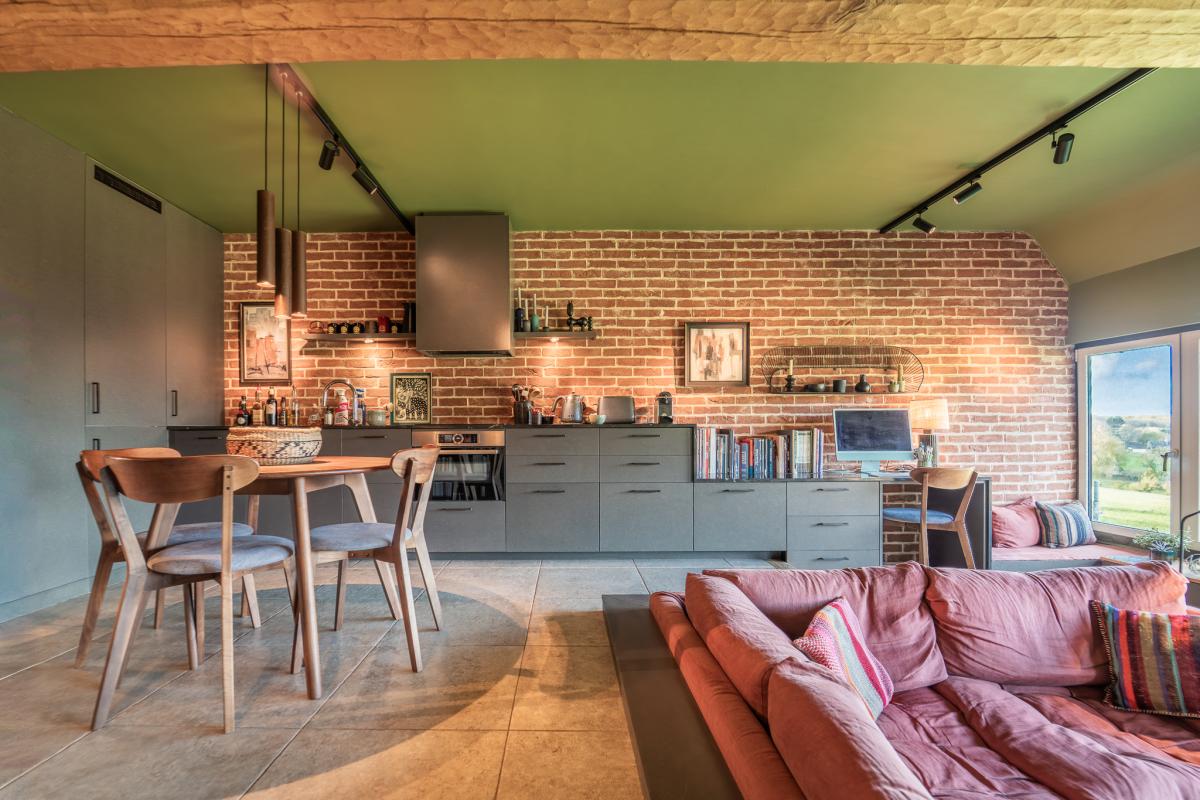 un séjour avec cuisine ouverte aménagée et équipée donnant sur une génére...
