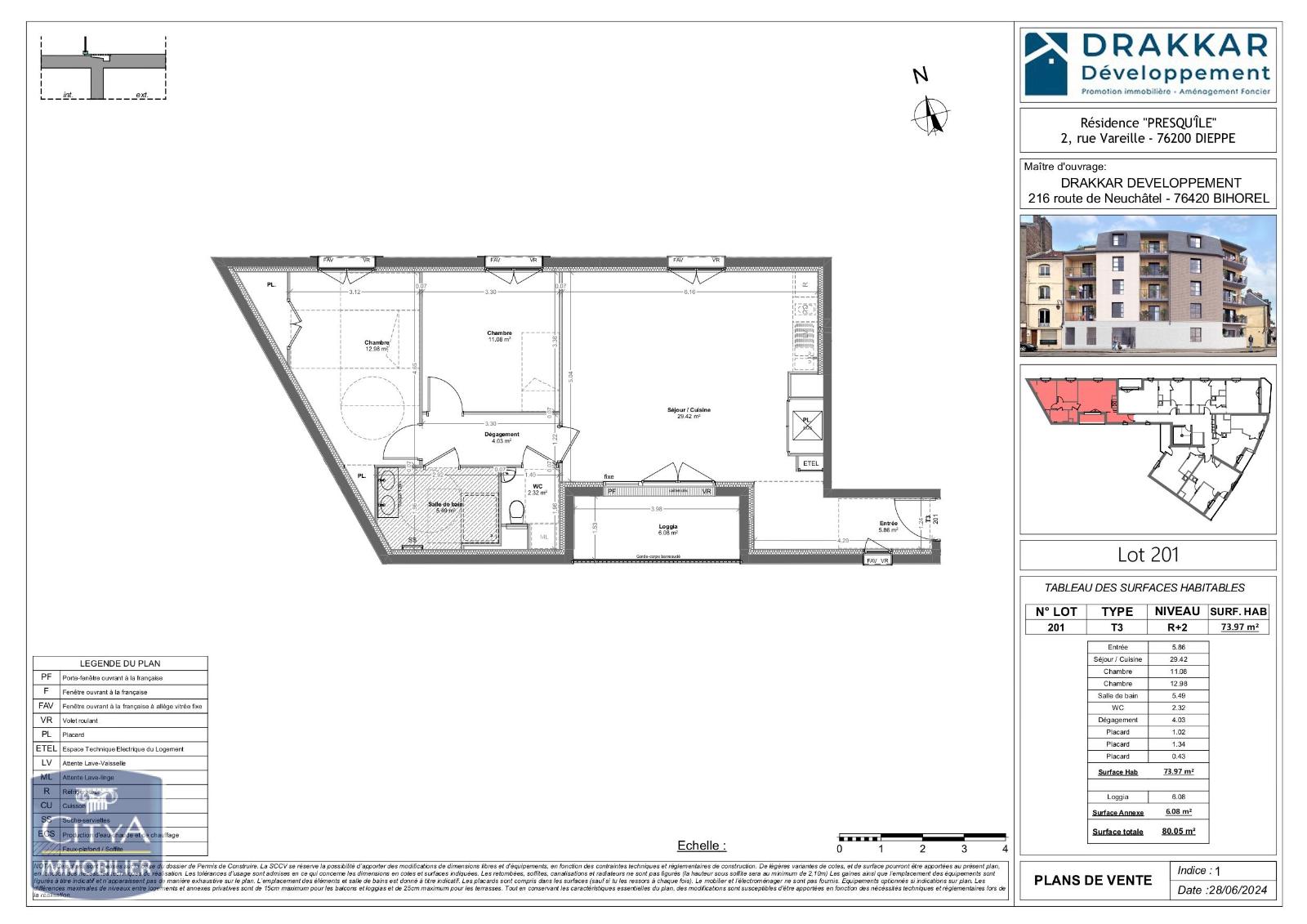 AU TROISIEME ETAGE , VUE SUR RUE., DANS UNE RESIDENCE AU CALME SITUE EN HYPER CENTRE VILLE DE DIEPPE ET A QUELQUES METRES DE LA PLAGE, CET APPARTEMENT E...