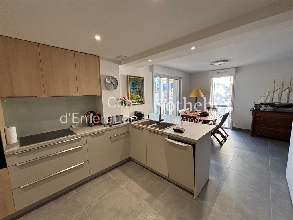 DINARD - Dans une petite copropriété de standing (9 lots d'habitation) récente (4 ans) avec ascenseur - Appartement de type 4 de 105 m² habitables très lumineux avec un balcon de 28 m². Vous profitez d'un vaste séjour avec une cuisine aménagée et équ...