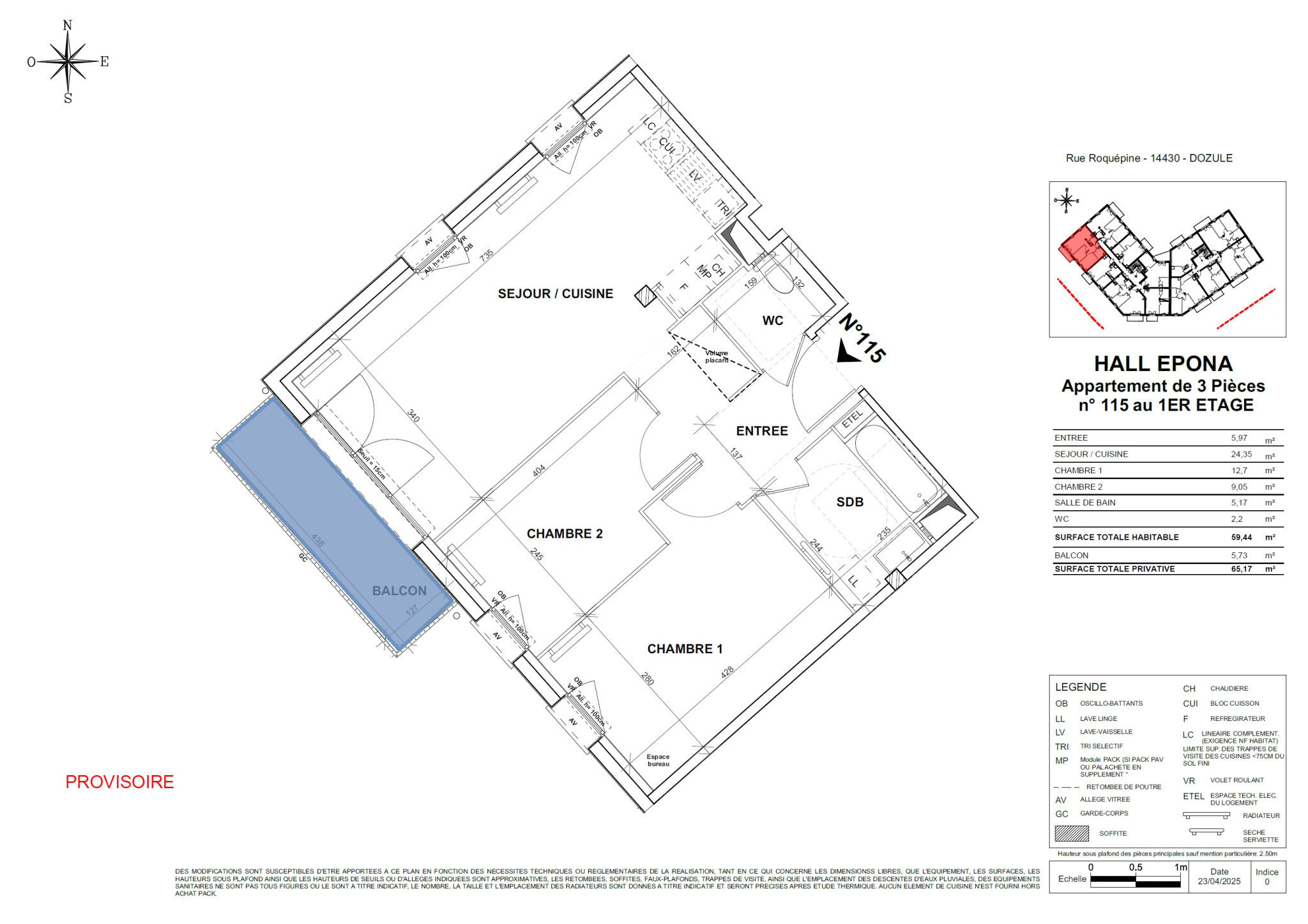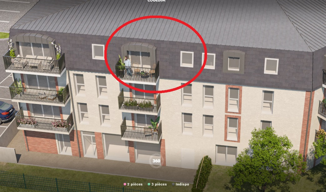 Ici, il s'agit d'un appartement 3Pièces de 60m2 avec balcon exposé Sud et ouest.