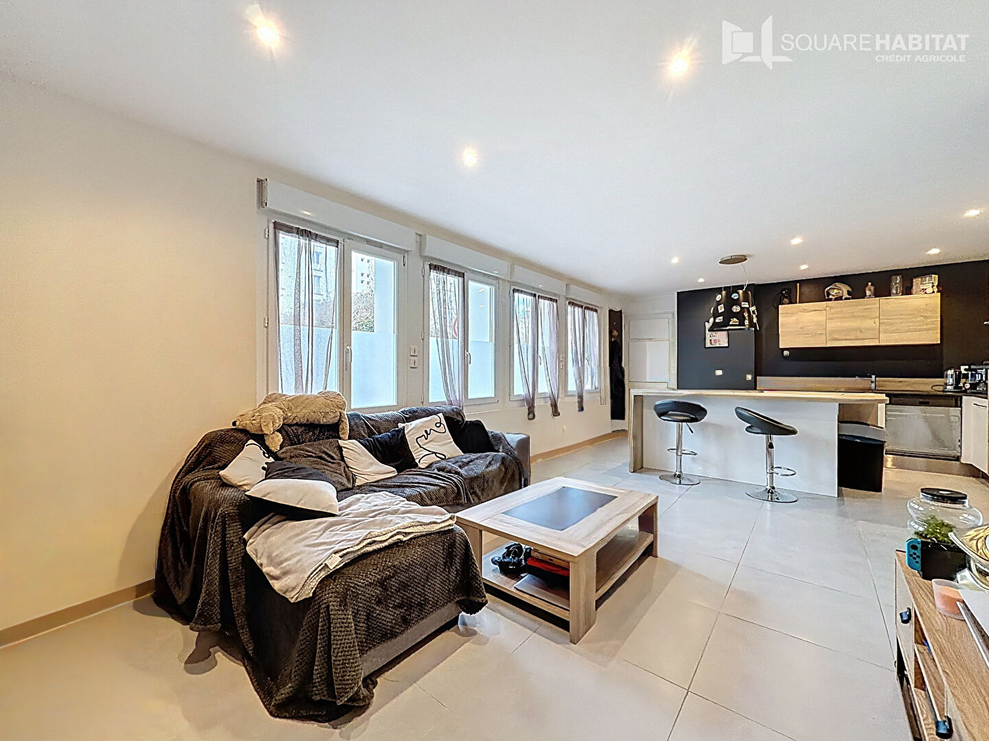 les deux grandes baies laissent entrer une lumière omniprésente sur un espace...