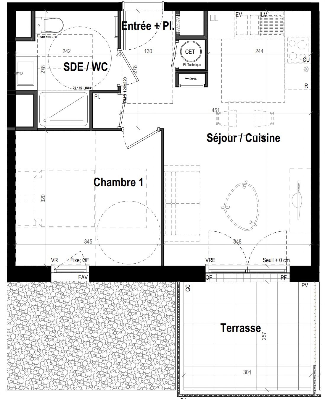 Il se compose d'une pièce de vie avec cuisine ouverte sur salon-séjour, de deux chambres avec placards, ainsi que...